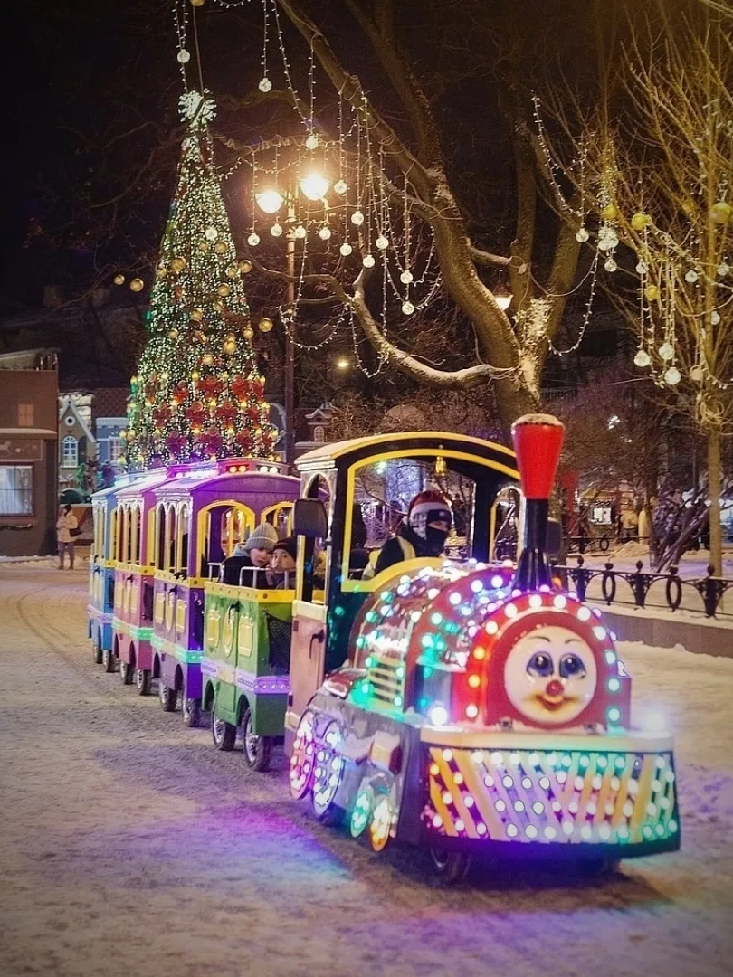 ✨🎊 На Манежной площади до 11 января работают бесплатные аттракционы: карусель и паровозик на колесах