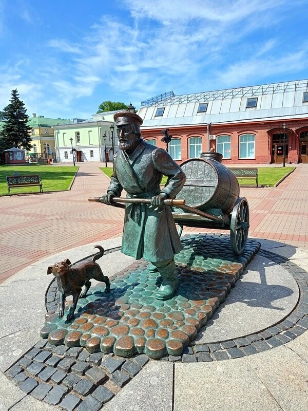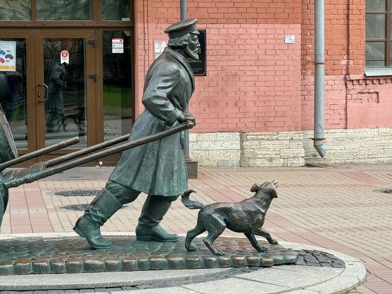 Памятник питерскому водовозу — тихий поклон людям, которые поили город до появления водопровода. Бронзовый водовоз с тяжёлой бочкой и верной собакой словно застыл в пути, напоминая о повседневном труде XIX века.