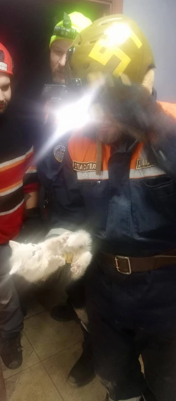 Сотрудники «Кошкиспаса» выезжали несколько раз. С помощью эндоскопической камеры удалось определить местоположение котенка и освободить