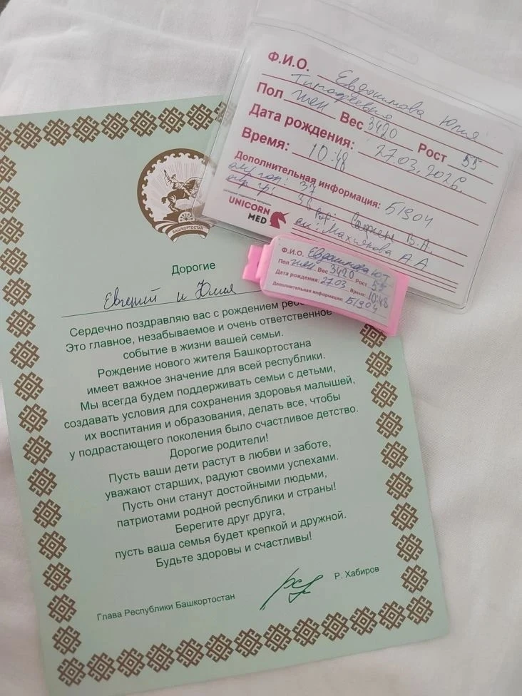 Малышка появилась на свет 27 марта в Уфимском районе и стала третьим ребёнком в семье Евдокимовых. Теперь у Ростислава и Радиславы есть младшая сестра — Рося или Росинка, как ласково называют её дома.