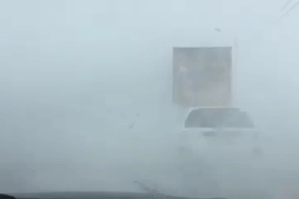 Видимость просто нулевая. На кадрах — Уфа, трасса Уфа – Оренбург около Стерлитамака, Зианчуринский район.