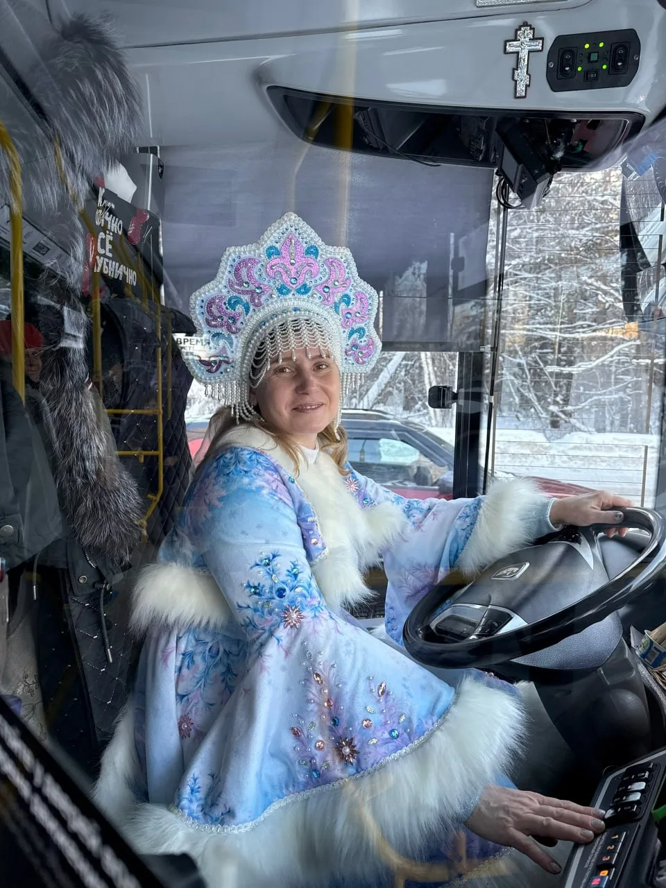 Тем временем водители автобусов в Новосибирске поднимают новогоднее настроение - вот она наша автоледи красотка 😍