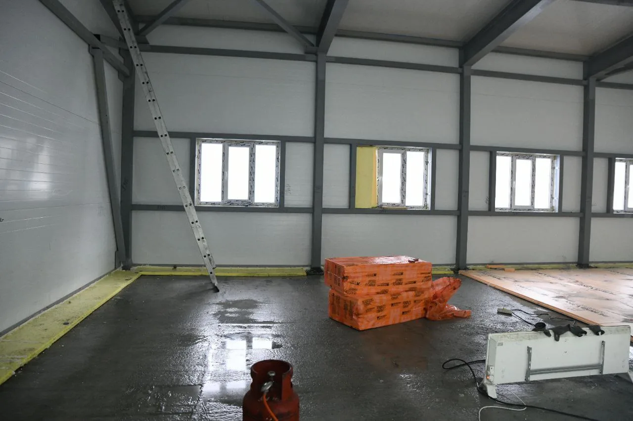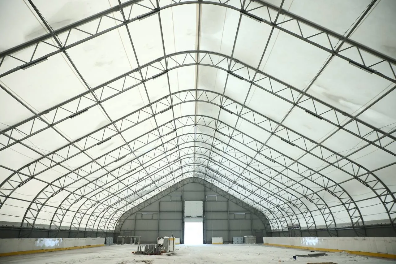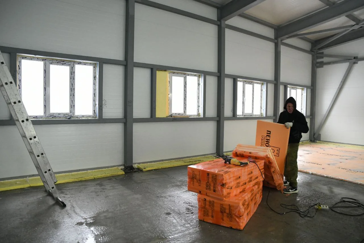 🧱Строительство спортивного объекта «Хоккейная коробка с каркасно-тентовым покрытием и раздевалкой» в Кировском районе на пересечении улиц Петухова и Виктора Уса успешно продвигается