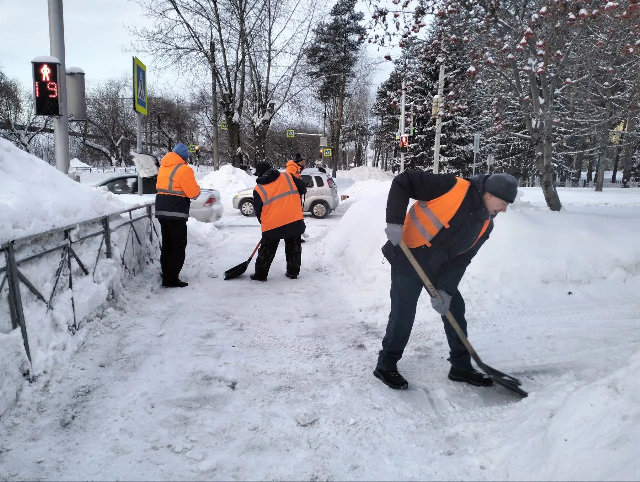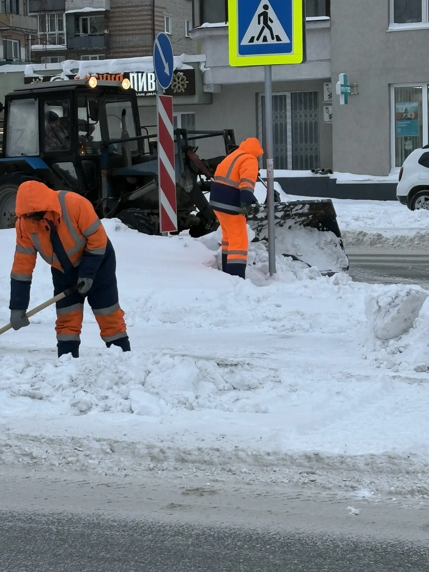 Тротуары убираем и механизированно, и вручную, в зависимости от площади и наличия ограждений. Убрать весь снег сразу после продолжительных метелей и снегопадов невозможно, но стараемся оперативно привести в нормативное состояние закрепленную территорию. Также мы купили навесное оборудование, оно устанавливается на плуг трактора МТЗ — «хлопушка», чтобы сбивать снег который скапливается под ограждением