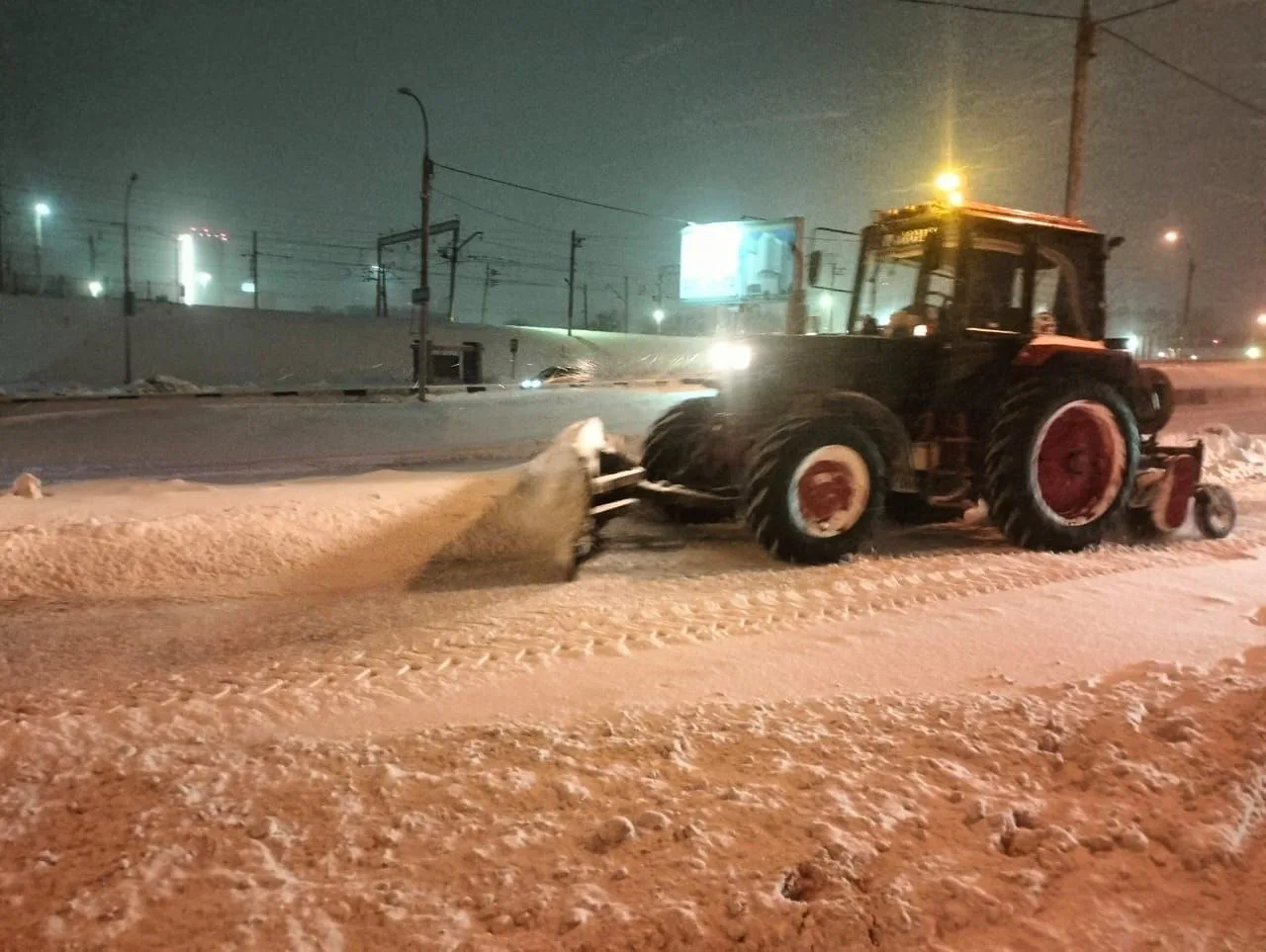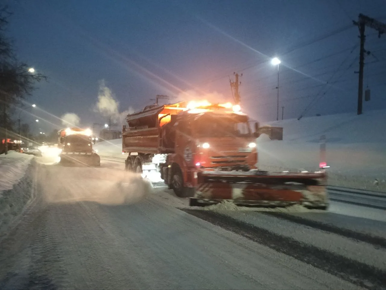 ✔️ Подмели 1 990 км тротуаров и дорог, обработали противогололёдными материалами 1 228 км, очистили ото льда 28 км тротуаров, произвели грейдирование 283 км.