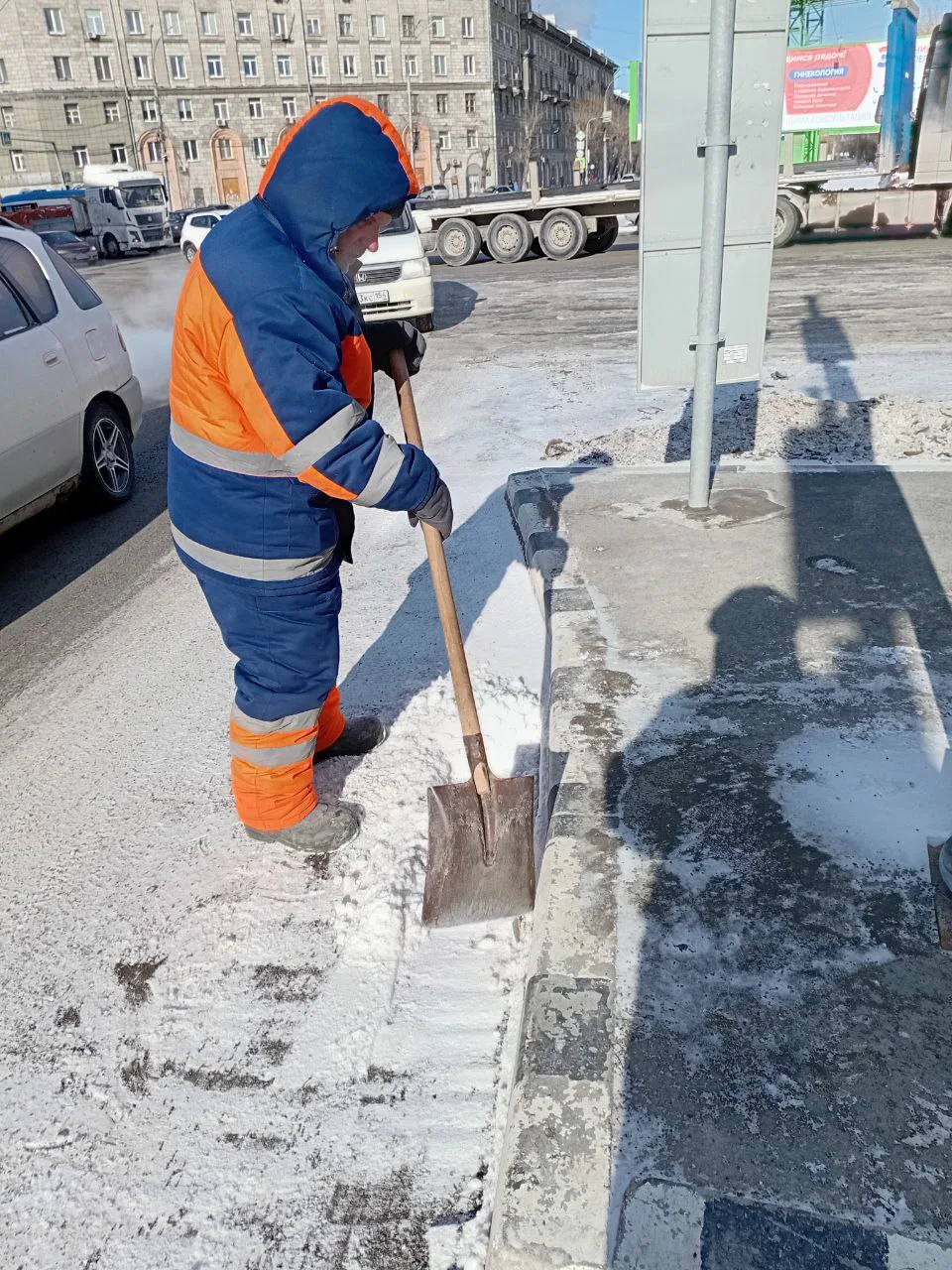 ✅ Подмели 1 962 км тротуаров и дорог, обработали противогололёдными материалами 2 446 км, произвели грейдирование 429 км, вскрыли ото льда 46 км тротуаров.