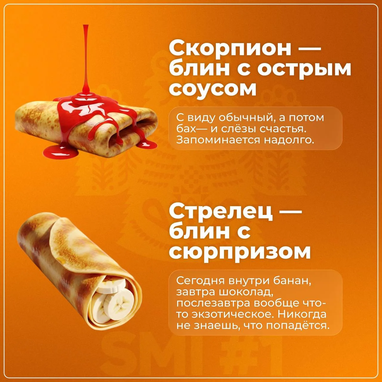 Мы подготовили для вас веселую подборку — можно узнать, какой вы блин по гороскопу. Заглядывайте и ищите себя 😉