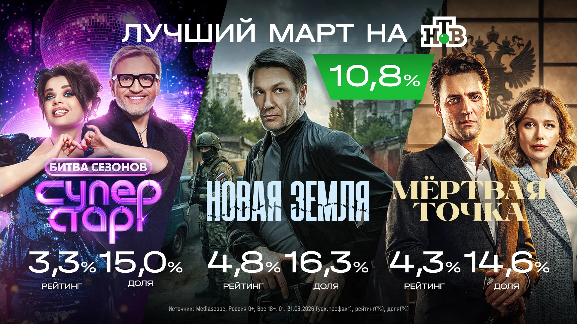🏆 Март с долей 10,8% в аудитории старше 18 лет стал лучшим мартом для #НТВ за всю историю измерений всей России!