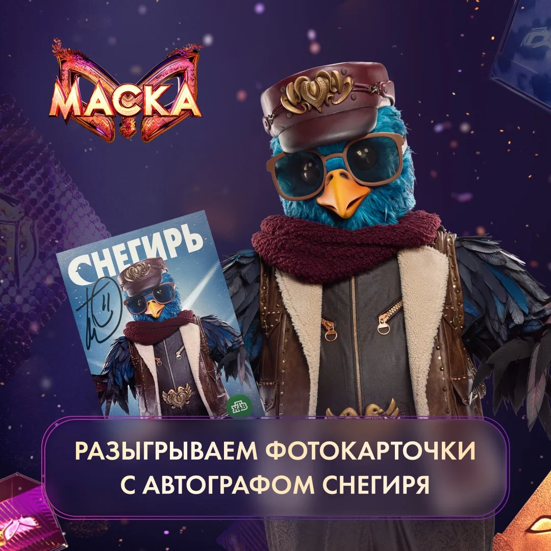 Друзья, мы разыгрываем уникальные фотокарточки с автографом Снегиря из шоу «Маска»🔥