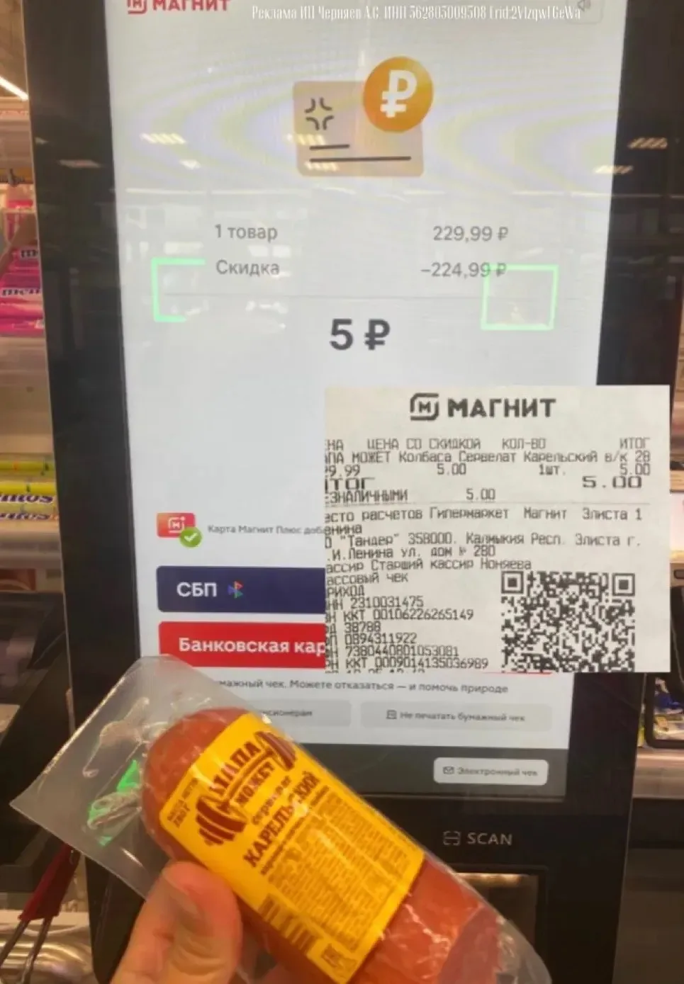 не наткнулась, народ сгребает икру, соки, колбасу за копейки!