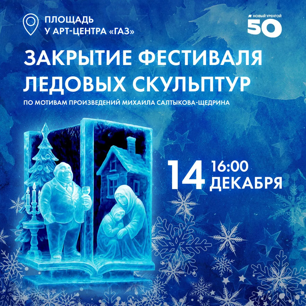 Участники — лучшие мастера из Ижевска, Якутии, Санкт-Петербурга, Перми, Тарко-Сале, Тольки и, конечно, Нового Уренгоя. Они создадут 8 ледяных произведений, посвящённых 200-летию со дня рождения писателя Михаила Салтыкова-Щедрина.