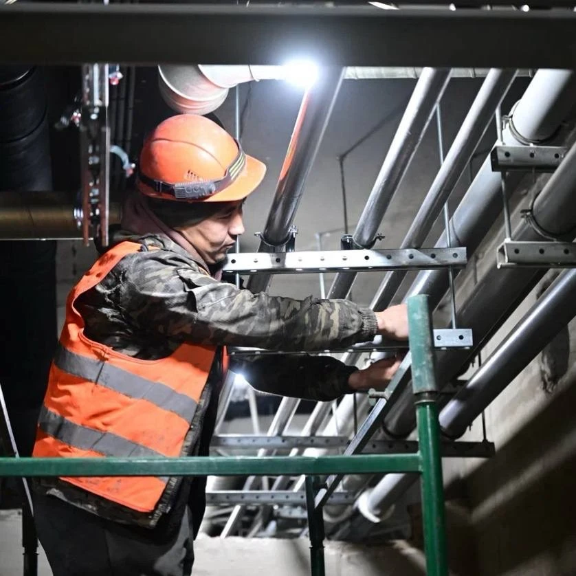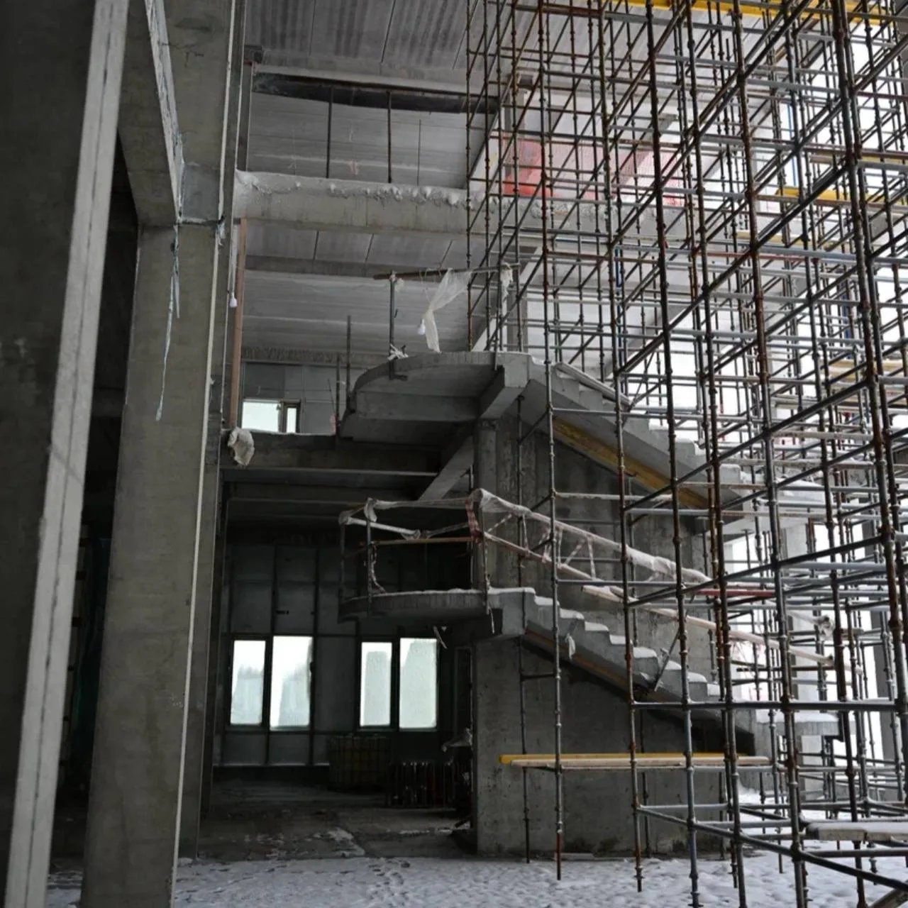 На объекте завершается монтаж несущих конструкций, продолжаются работы по возведению стен и внутренних перегородок, ведется монтаж внутренних инженерных систем отопления, водоснабжения, вентиляции и электроснабжения.