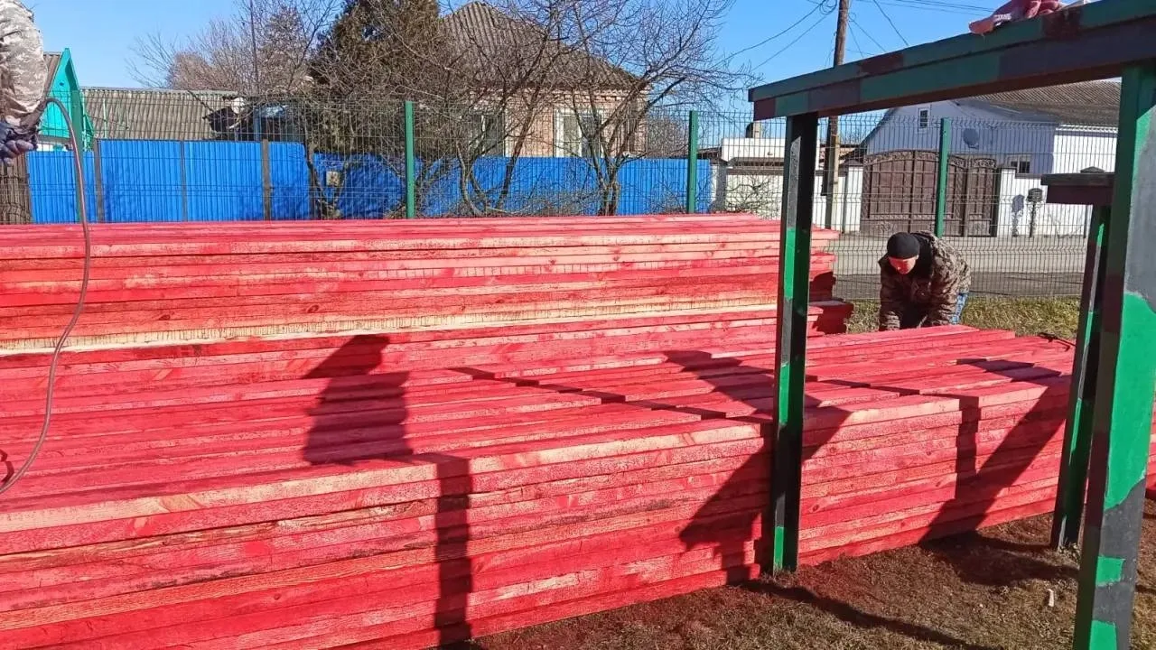 Кроме того, ведется огнезащитная обработка деревянных балок, предназначенных для капитального ремонта кровли школы.
