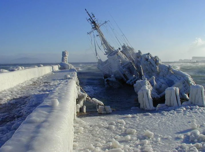 Не менее разрушительным стал «холодный апокалипсис» 9 декабря 2002 года. Шквальный ветер и сильное обледенение привели к затоплению двух судов военно-морской базы у причала морского вокзала. Среди них были вспомогательное гидрографическое судно «Арктика» и большой катер. Ветер достигал 40 метров в секунду, температура воздуха опустилась до 14 градусов мороза, а высота волн в Цемесской бухте превысила 4 метра. Суда были вынуждены покинуть стоянку и выйти в открытое море.