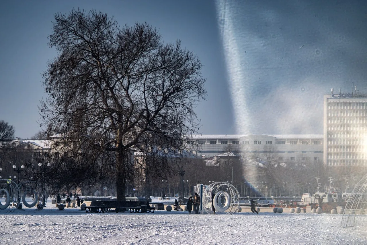 Сквозь лёд. Фотографии не могут передать, насколько там сегодня холодно и скользко. Поэтому сделала вот такие снимки через льдинку для атмосферности. Это достаточно сложная техника съёмки, если учитывать, что льдинки в руках быстро тают.