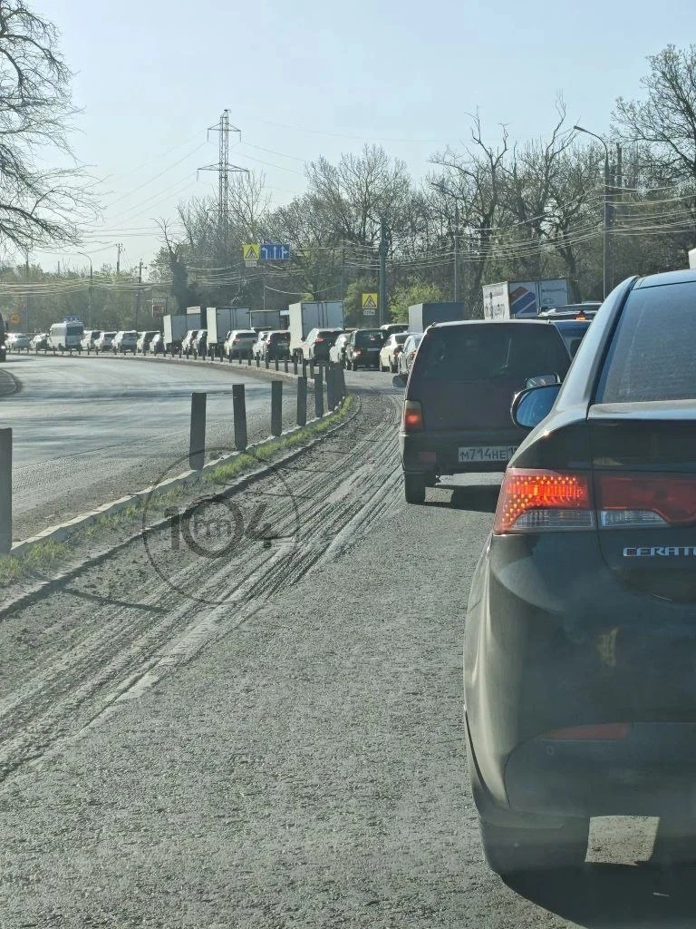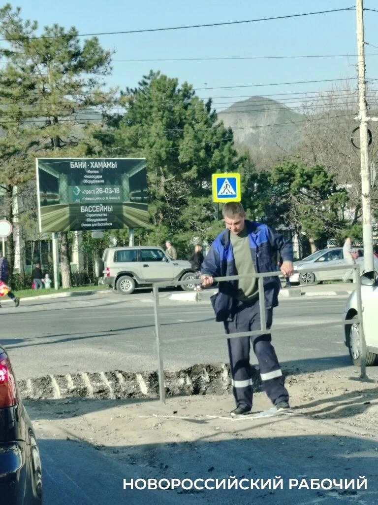 Вчера эту яму, на которую горожане жаловались несколько месяцев, начали ремонтировать. Теперь она стала еще шире и глубже и огорожена. Заодно рядом на перекрестке ремонтируют еще один участок, там тоже глубоко. И это — сужение из-за ограничения движения по правой полосе у самого перекрестка на Анапском шоссе при въезде в город.