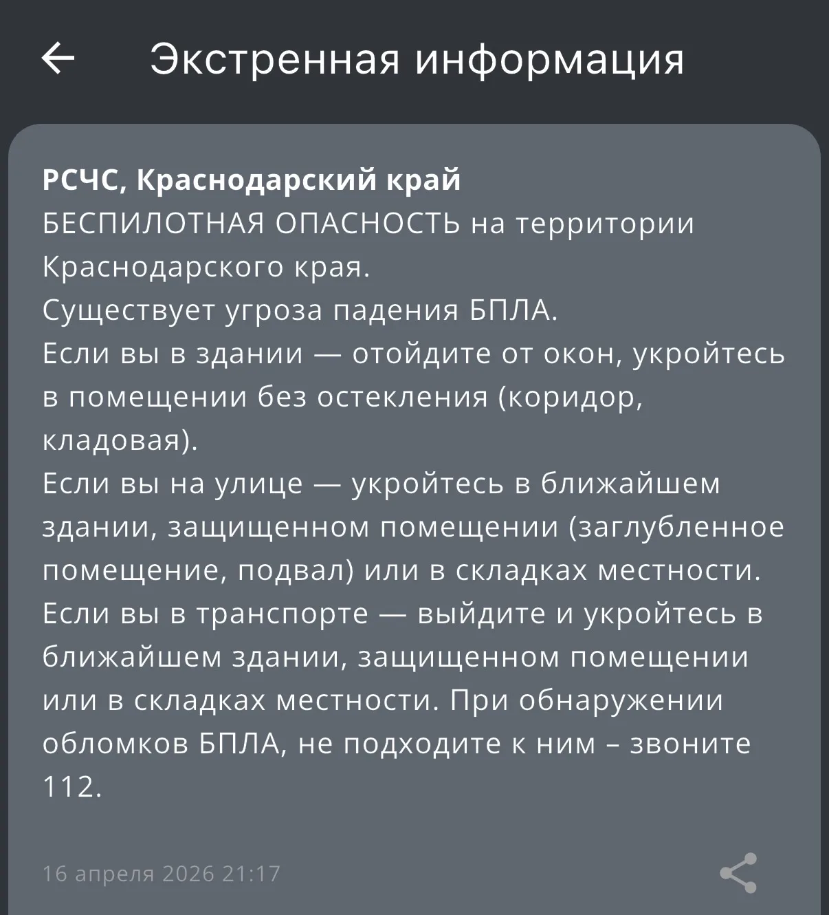 🔴 Внимание, в Краснодарском крае объявлена беспилотная опасность!