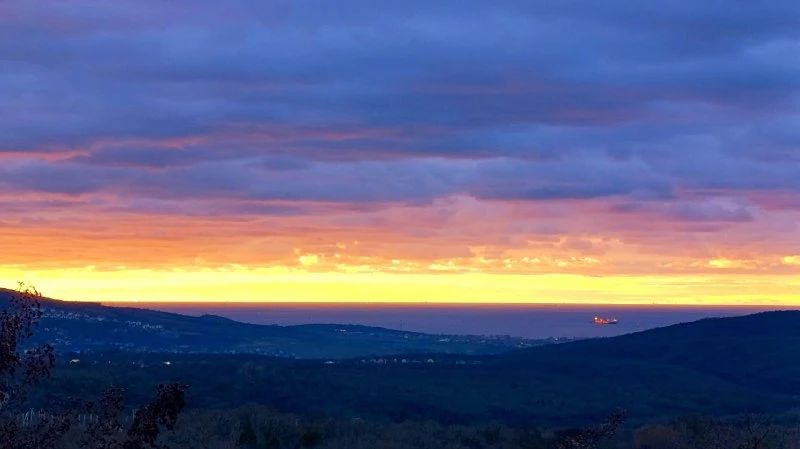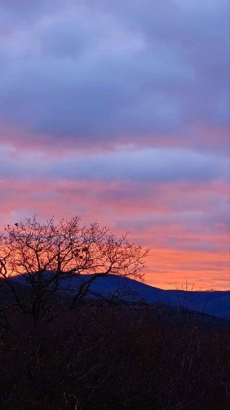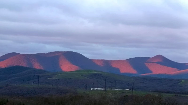 Лишь на несколько минут на восходе солнце окрасило горы багрянцем, и снова скрылось за плотный занавес туч 🌥12.11.2025