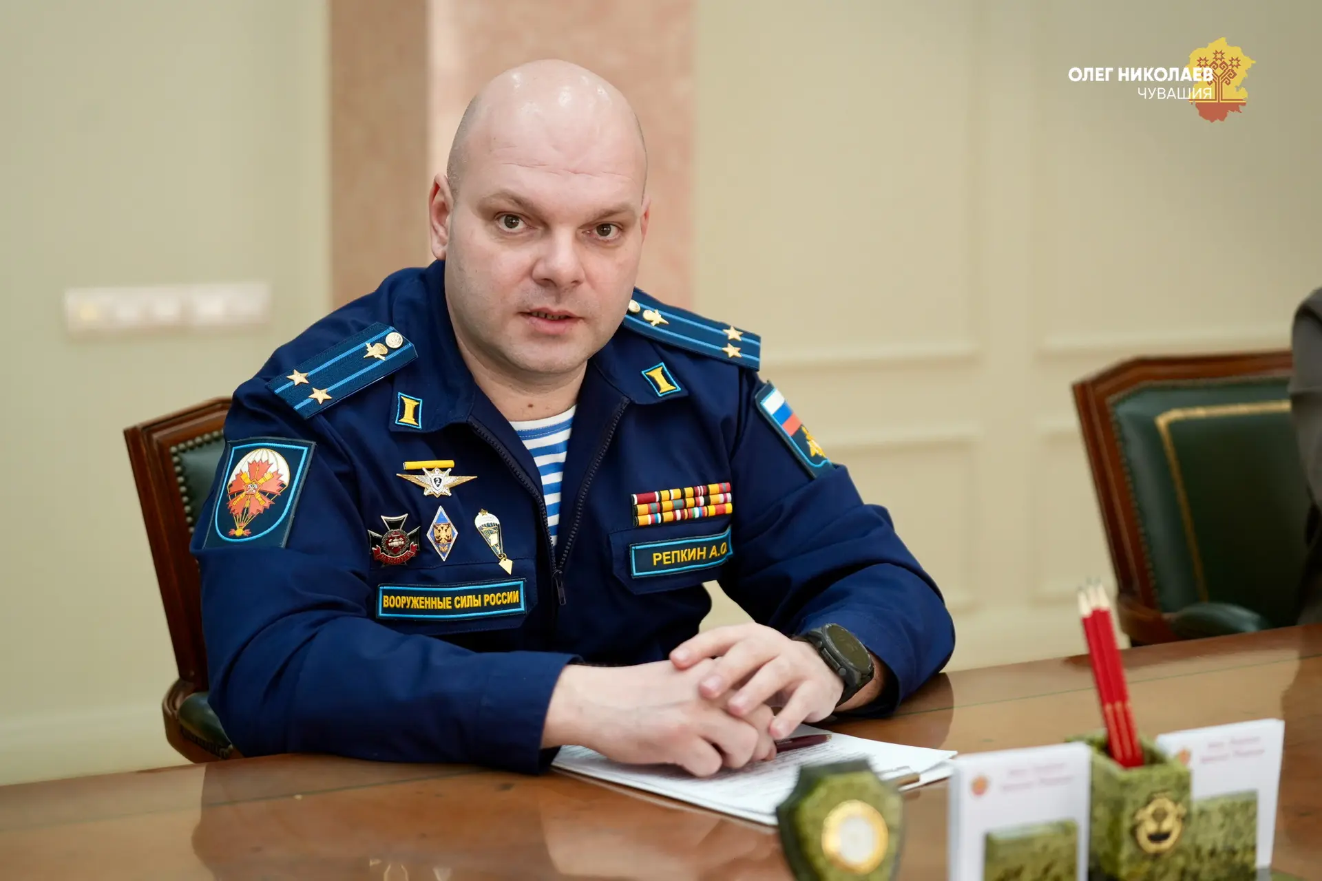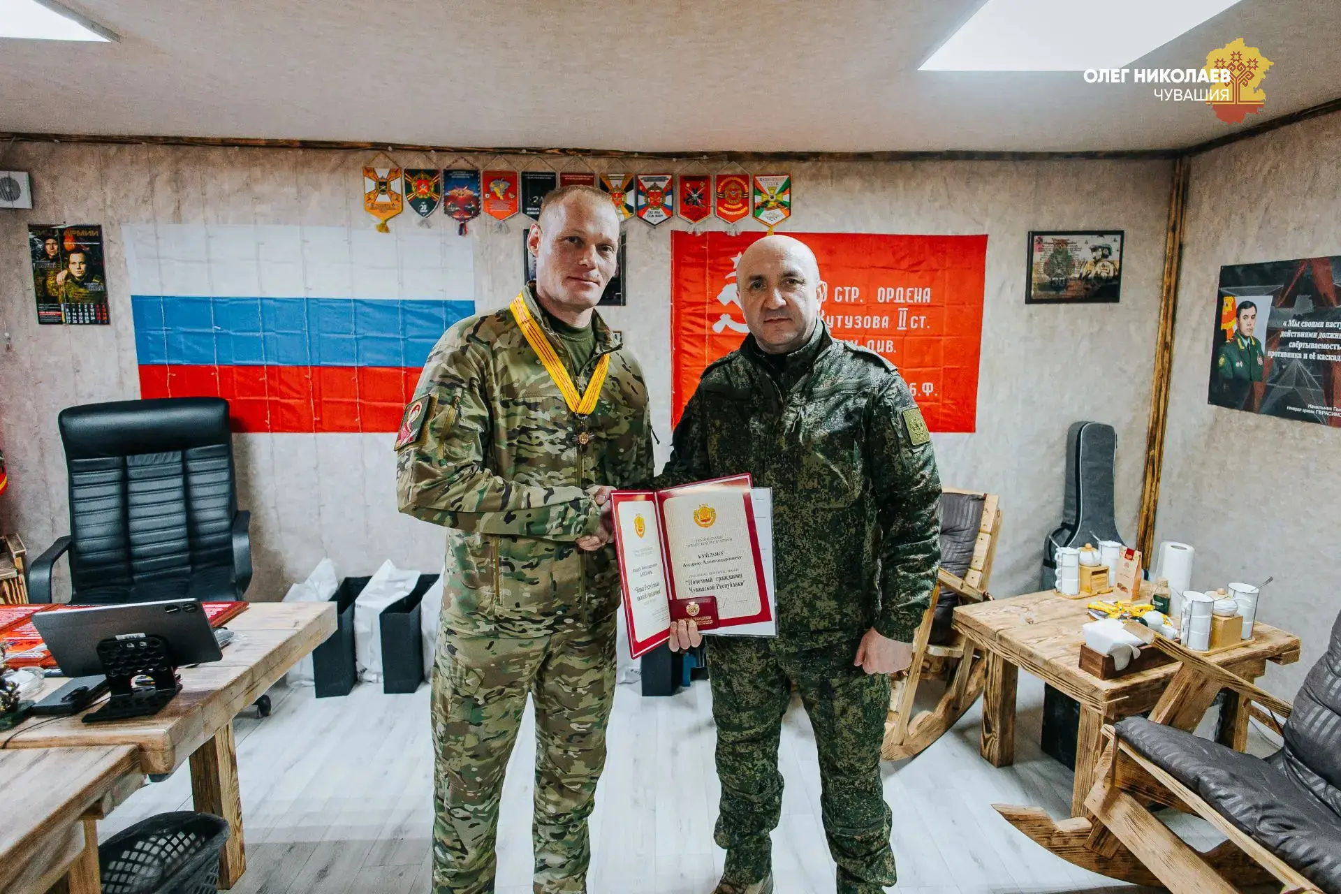По моему решению присвоено звание и вручен знак Почётного гражданина Чувашской Республики Герою России, генерал-майору Андрею Буйлову. Его путь – пример служения Родине.