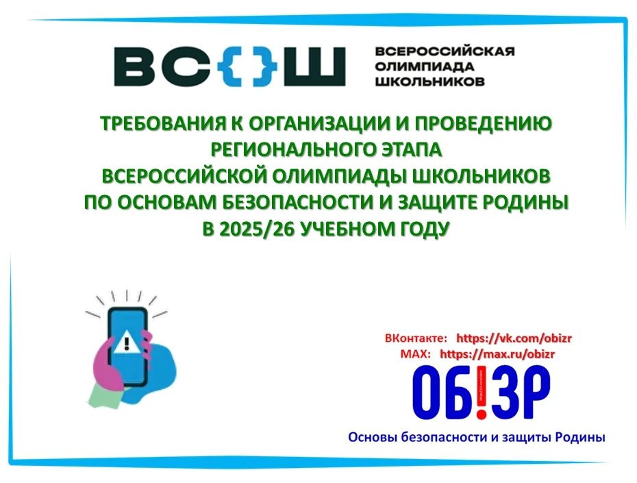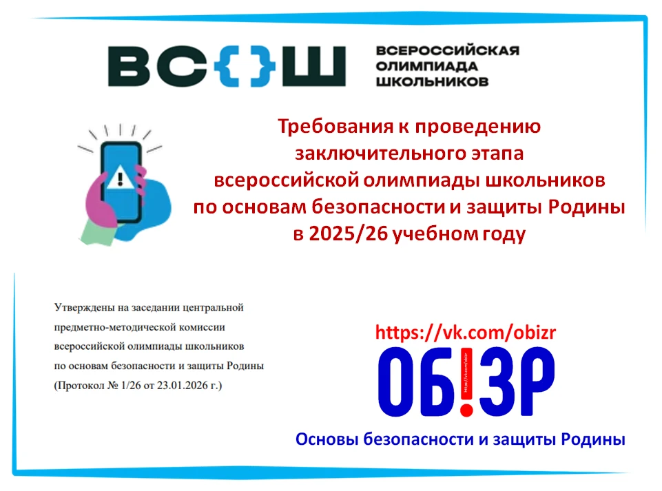 #ВсОШ_ОБЗР На следующей неделе пройдёт региональный этап всероссийской олимпиады школьников (ВсОШ) по основам безопасности и защиты Родины! Ну а сегодня, публикуем Требования к проведению заключительного этапа всероссийской олимпиады школьников по основам безопасности и защиты Родины в 2025/26 учебном году.
