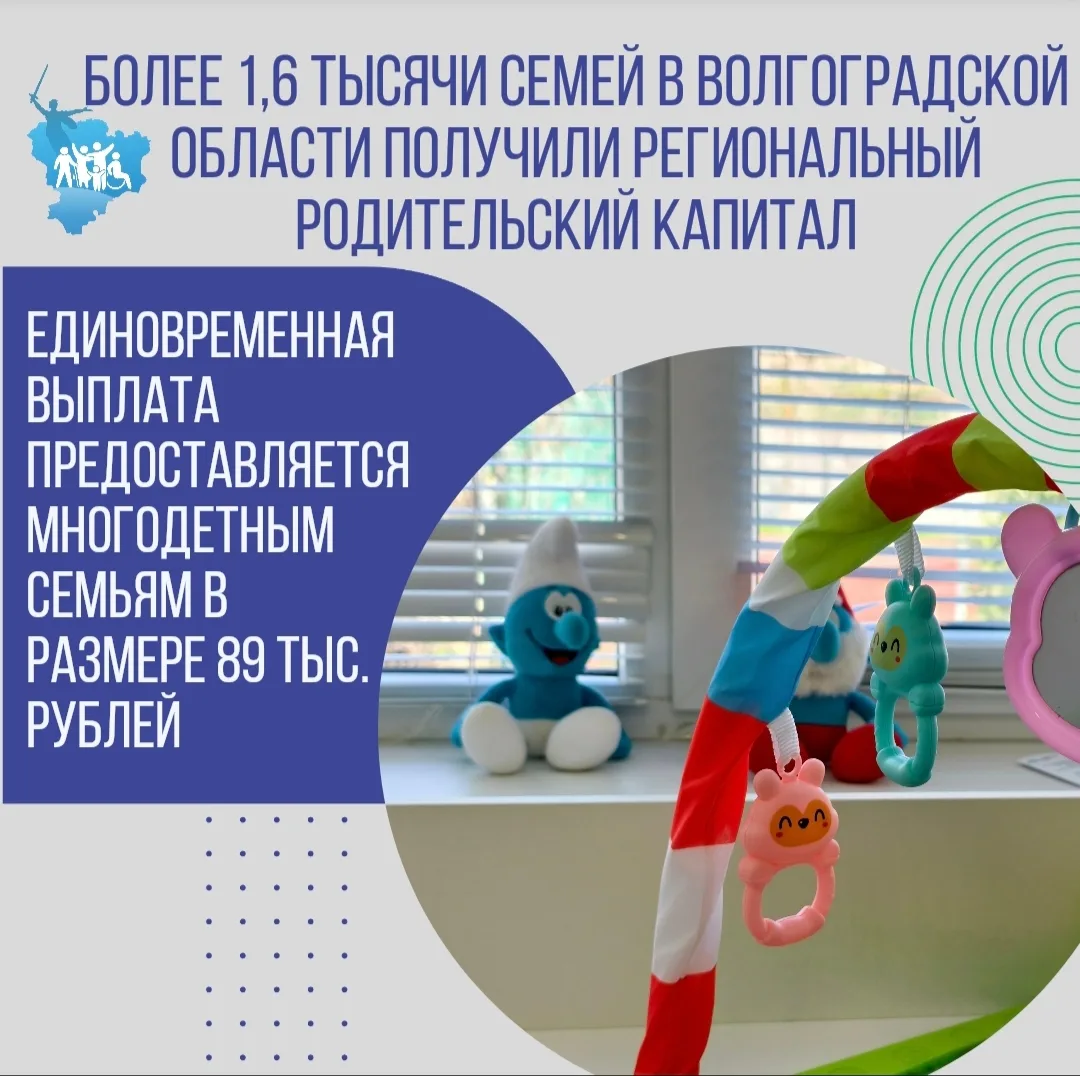 Более 1,6 тысячи семей в Волгоградской области получили региональный родительский капитал