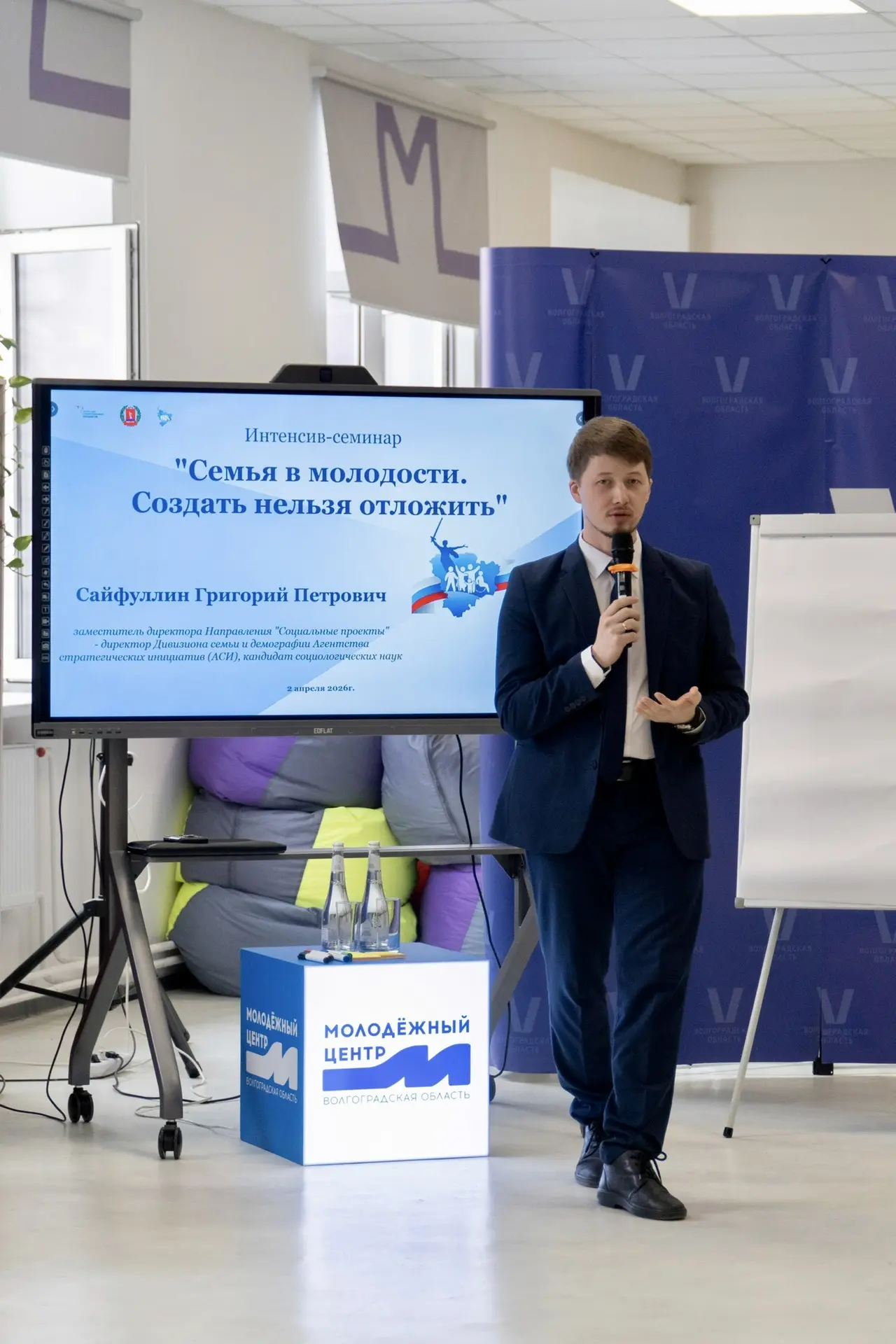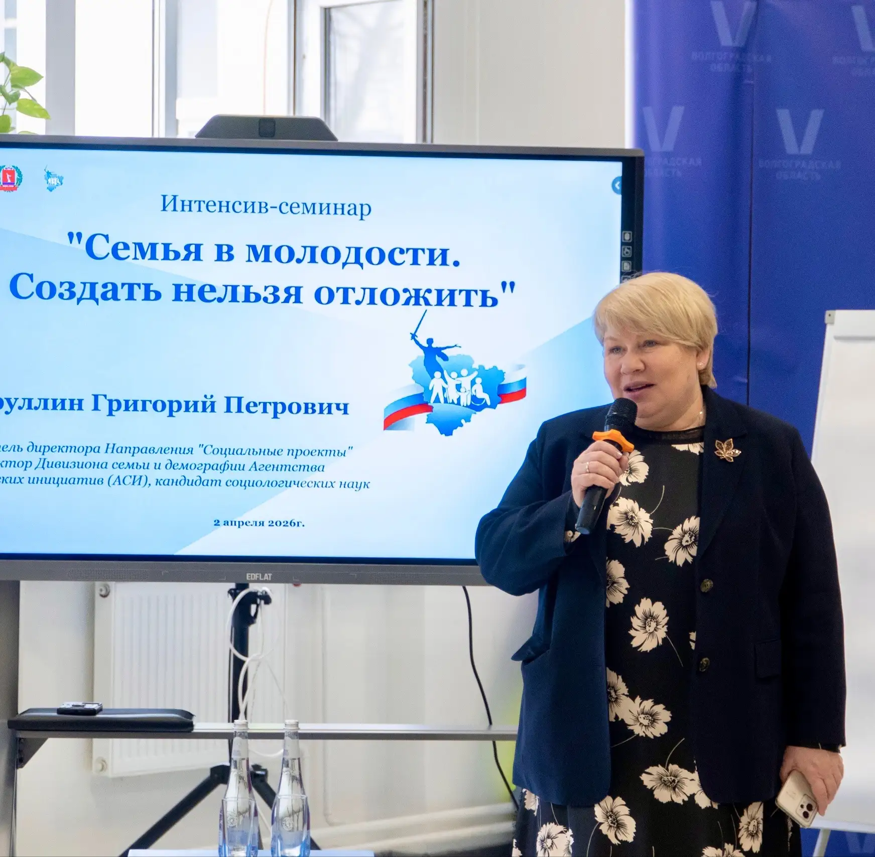 Сегодня в Молодёжном центре состоялся интенсив-семинар для студенческой молодёжи «Семья в молодости. Создать нельзя отложить». С приветственным словом к участникам обратилась заместитель губернатора Волгоградской области Лариса Михайловна Савина