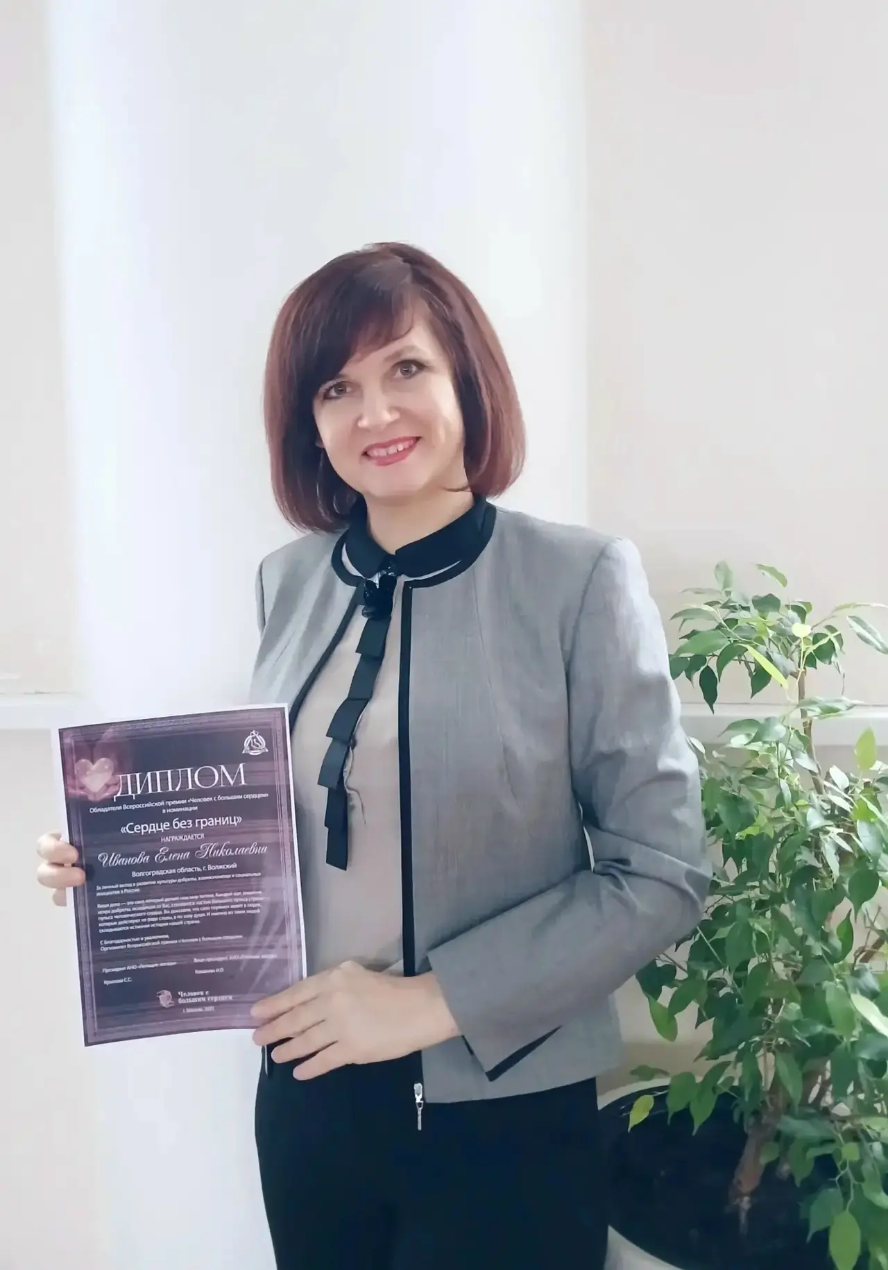 Волгоградскую область в конкурсе представила Елена Иванова - заведующий отделением интенсивного ухода Волжского дома социального обслуживания. Елена стала обладателем премии и была отмечена в номинации «Сердце без границ» за проект «Внешнее волонтерство. Человеку нужен человек».