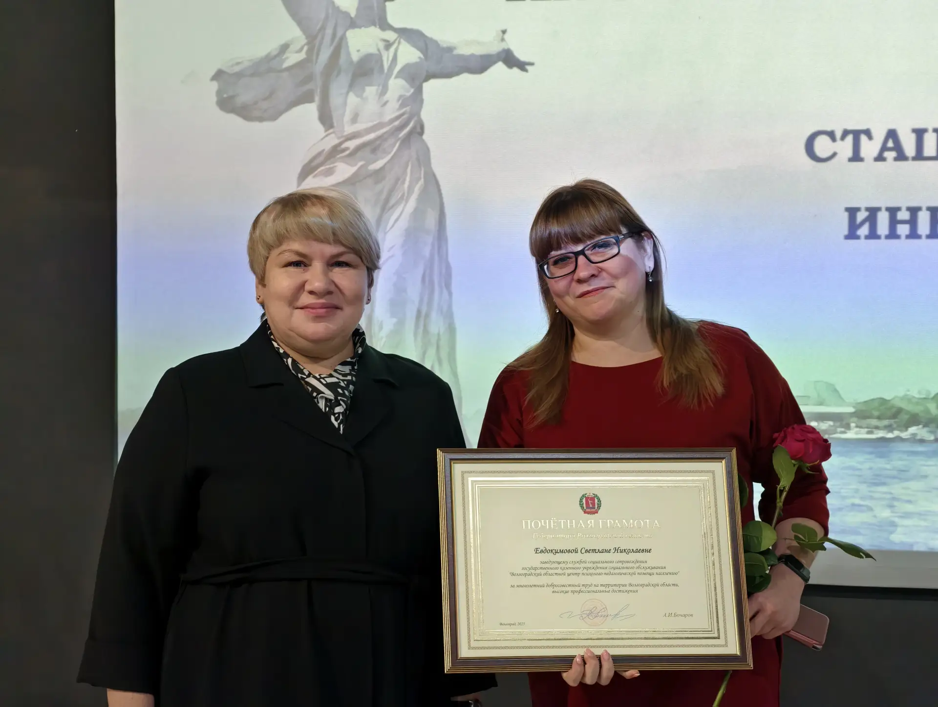 Завершилась коллегия торжественной церемонией вручения почетных грамот и благодарностей Министерства труда и социальной защиты Российской Федерации, губернатора Волгоградской области, Волгоградской областной Думы, комитета социальной защиты населения региона. За многолетний добросовестный труд и высокий профессионализм наградили 26 социальных работников и общественников.