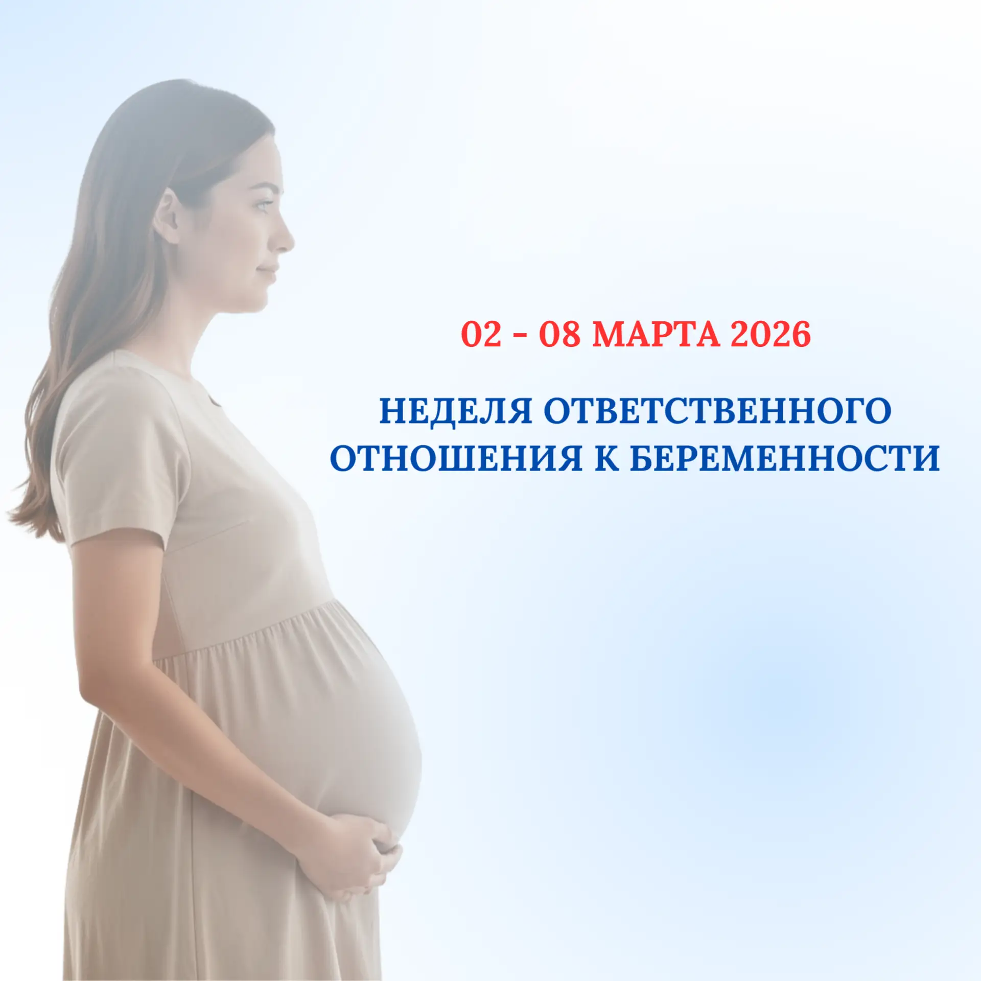 Со 2 по 8 марта 2026 года в нашей стране проходит Неделя ответственного отношения к беременности. Цель мероприятия — уделить особое внимание правильному подходу к материнству и отцовству.