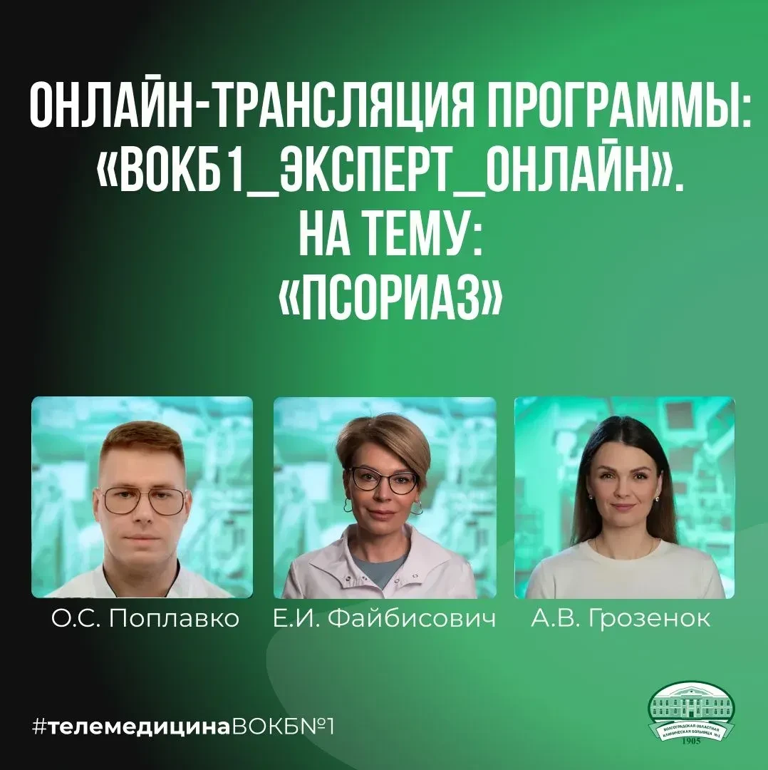 ➡️18 февраля в 16:00 по Московскому времени приглашаем Вас присоединиться к прямой трансляции программы «ВОКБ1_ЭКСПЕРТ_ОНЛАЙН» из Регионального телемедицинского центра ВОКБ №1 на тему «Псориаз».