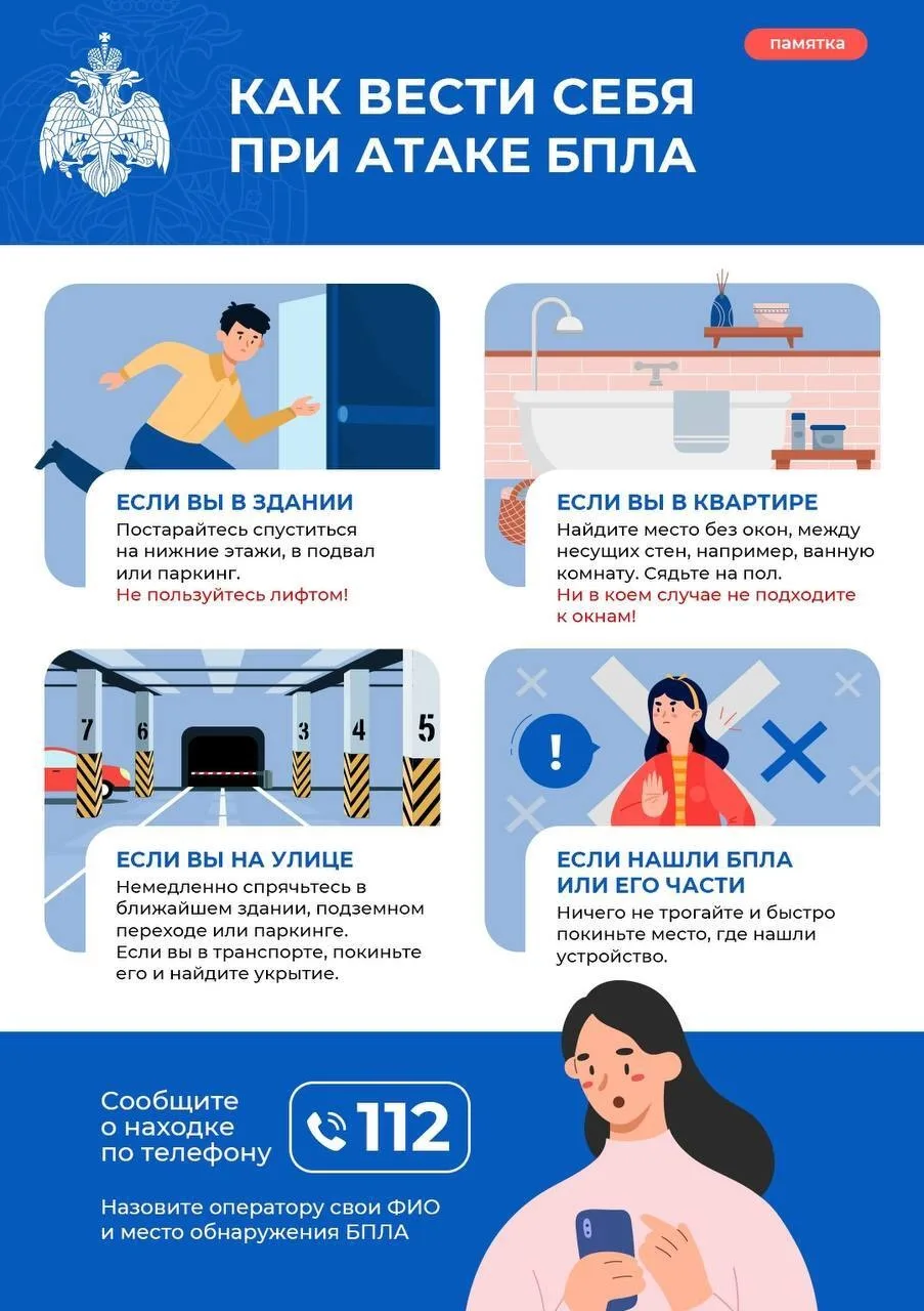 Сохраняйте спокойствие и не паникуйте. Что нужно делать при обнаружении или атаке БПЛА – смотрите в инфографике.