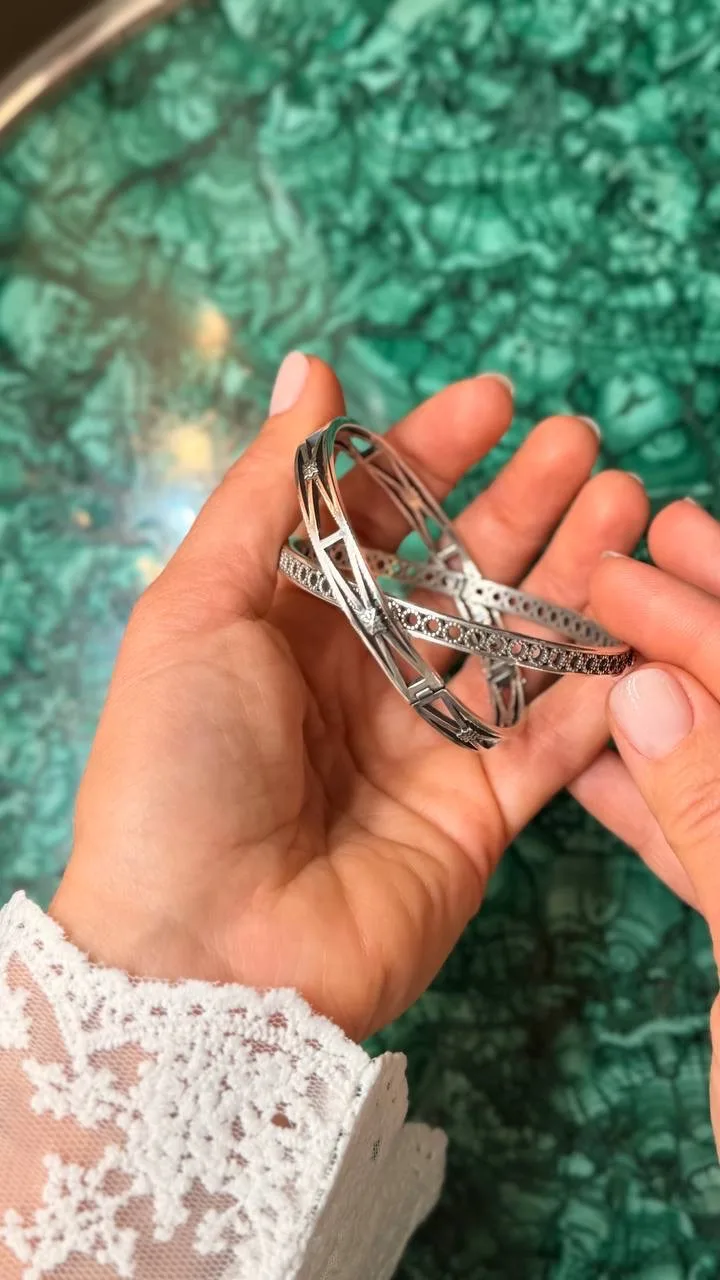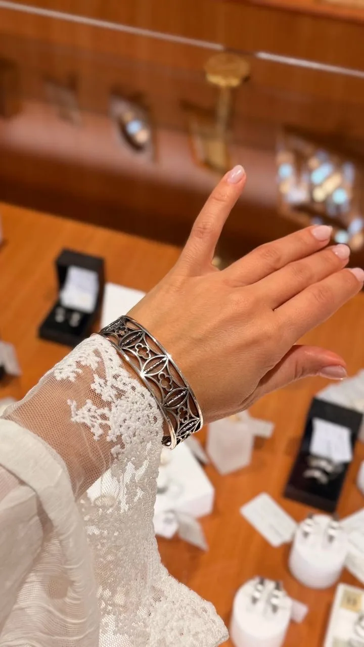 Вариантов браслетиков немного, всего четыре. Они сделаны из серебра и достаточно универсальны: хорошо смотрятся и со свитером, и с вечерними нарядами. Взяла себе тот, что на веревочке. Ходит теперь со мной!