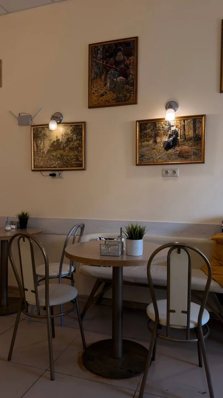Пока ждала дочек с турнира по гимнастике, забежала в первую попавшуюся кафешку. А тут красота, а тут всё разглядывать хочется. Интерьер классный. Главный герой заведения, конечно же, гусь: он повсюду — на полках, на стенах, и даже на диване восседает солидный гусь Валера.