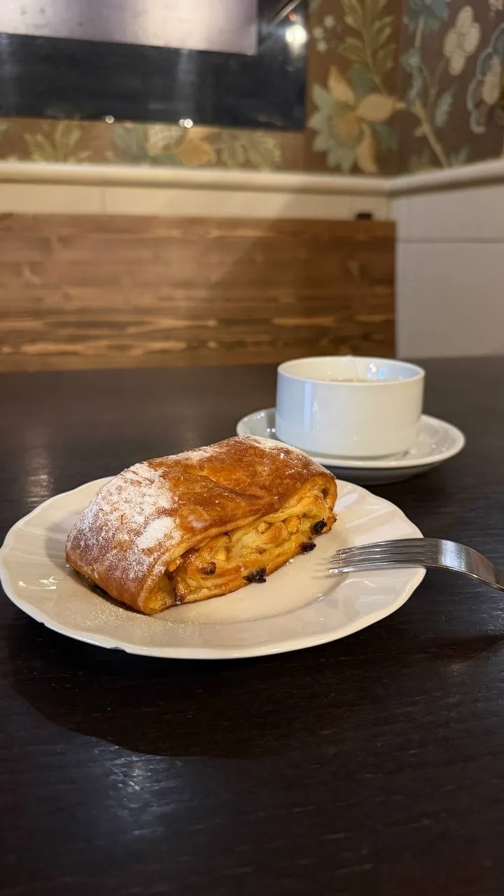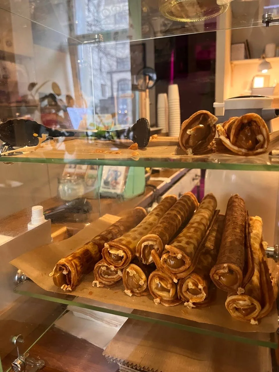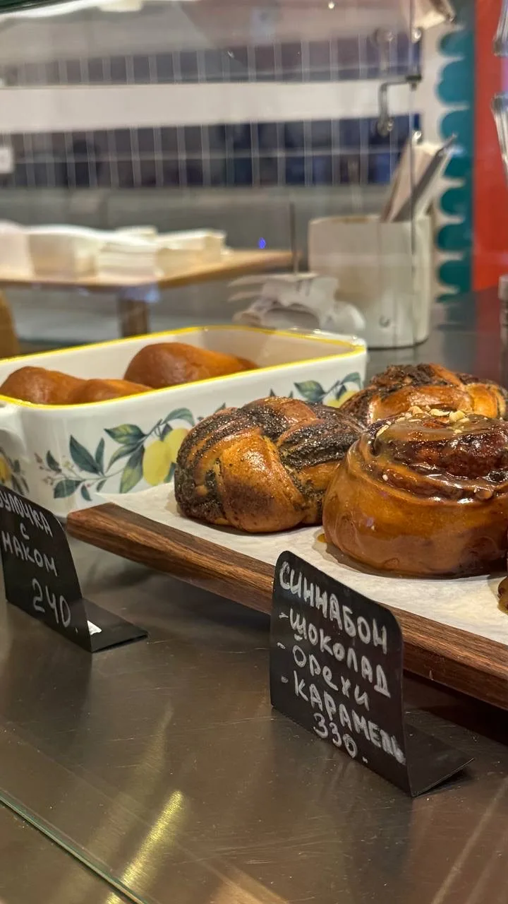 Готовят трубочки с разными начинками: матча-ваниль, шоколадная, лимонная, кокосовая. Цена от 140₽. Я пробовала сгущенку с грецким орехом. Идеальная!