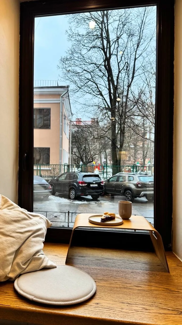 Внутри просто и стильно. Можно расположиться за столиками, а можно на подоконниках. Выбор еды небольшой, но любопытный: японский сэндвич, выпечка, вафли из цукини, каши, веганские и сытные сырники.