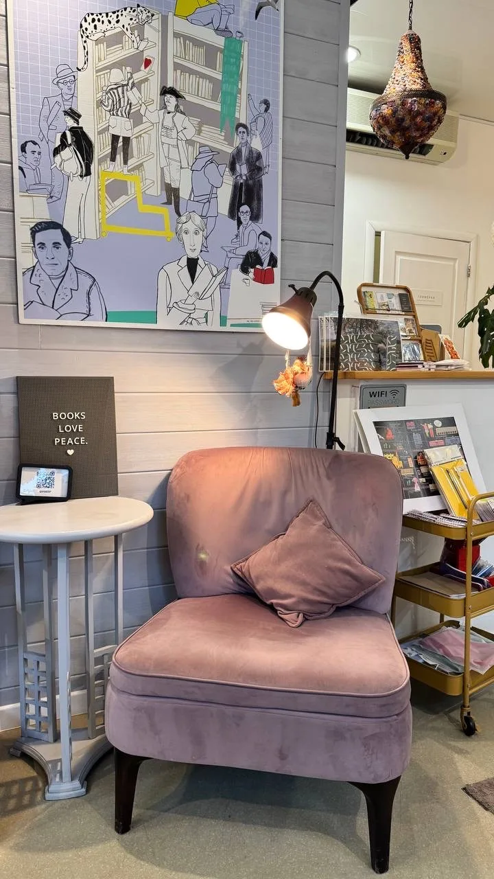 В книжном Перед прочтением сжечь можно не только купить книги, винтажные журналы и всякие интересные штучки, а еще и выпить вкусный кофе. Маленькое, но очень уютное и милое пространство.