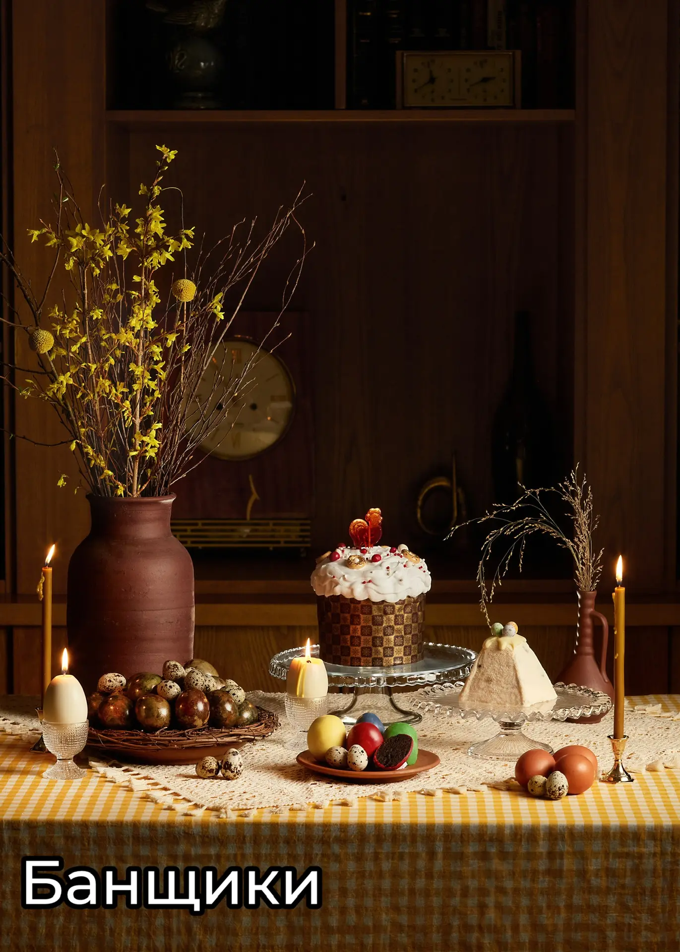 🥧В Банщиках можно заказать творожную пасху (с цукатами, ягодами и изюмом) – 1 990 руб., кулич (с цукатами, изюмом, лазурью и леденцами) – 1 790 руб. и набор шоколадных яиц «Картошка» в цветной глазури (4 шт.) – 1 680 руб./ пасхальное меню