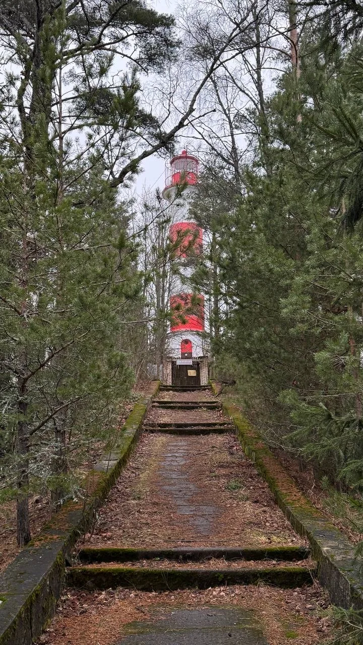 Еще одна остановка на пути в Приморск — действующий маяк Стирсудден. К нему ведёт лестница прямо с дороги (он будет справа, если ехать из Петербурга). Но подойти вплотную не получится — срабатывает сигнализация.
