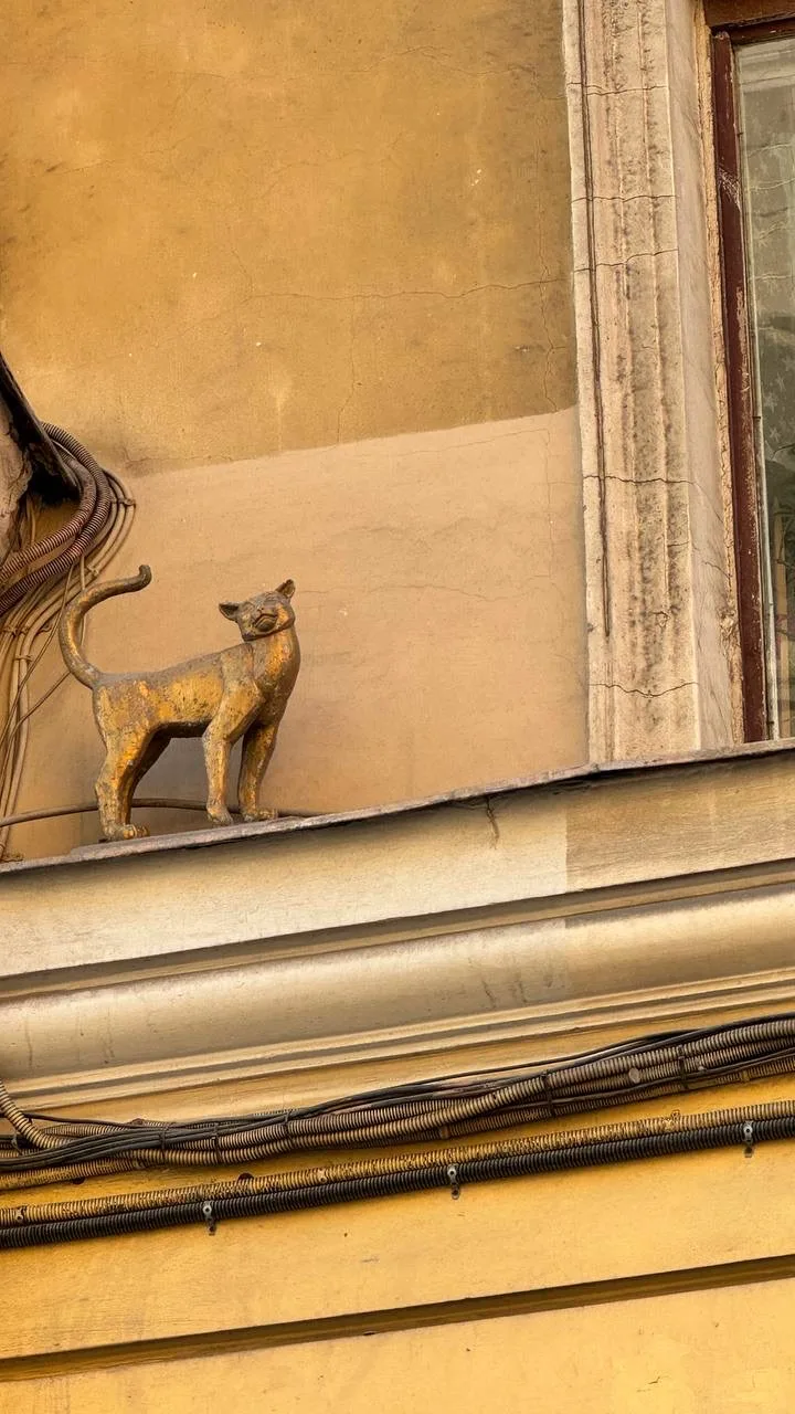 На фасаде Елисеевсого магазина можно увидеть кота Елисея, а на доме напротив — кошечку Василису. Говорят, котопара помогает в любовных делах, нужно лишь забросить монетку на карниз.