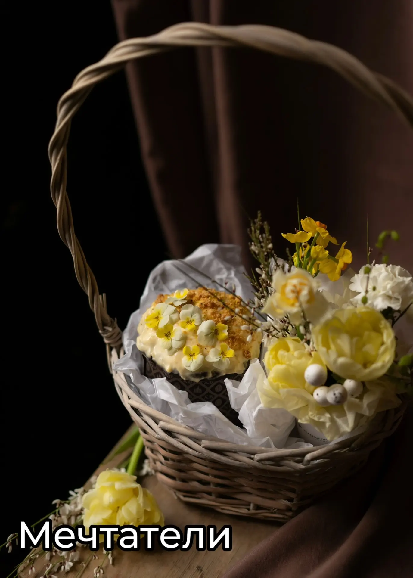 🥧Кафе Мечтатели объединились с цветочной лавкой Зеленогорск и придумали праздничные корзины: кулич + цветочная композиция (5500 руб.). Куличи с лаймовой начинкой или с клюквенным кули (2300 руб. отдельно кулич). Предзаказ на сайте до 10 апреля
