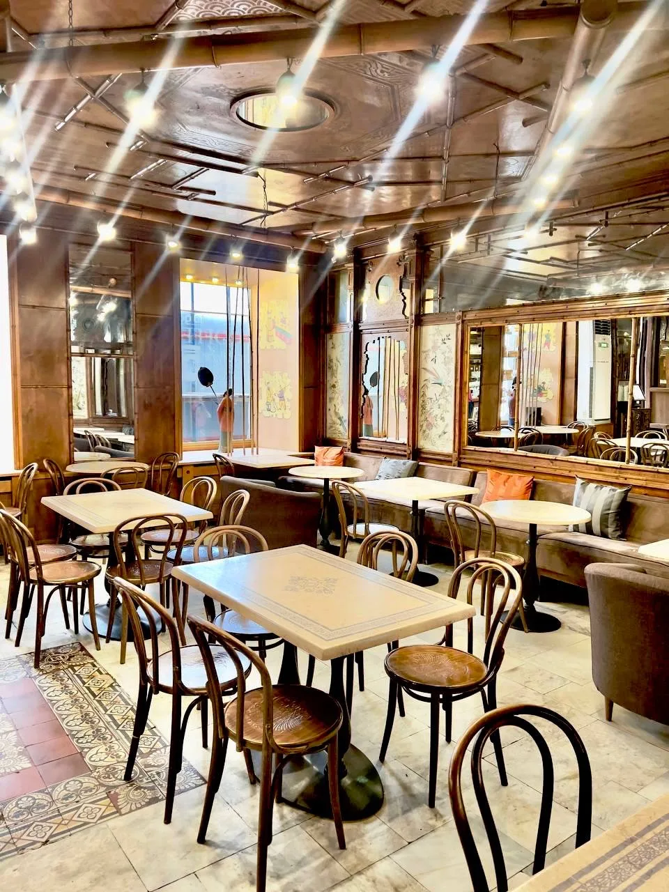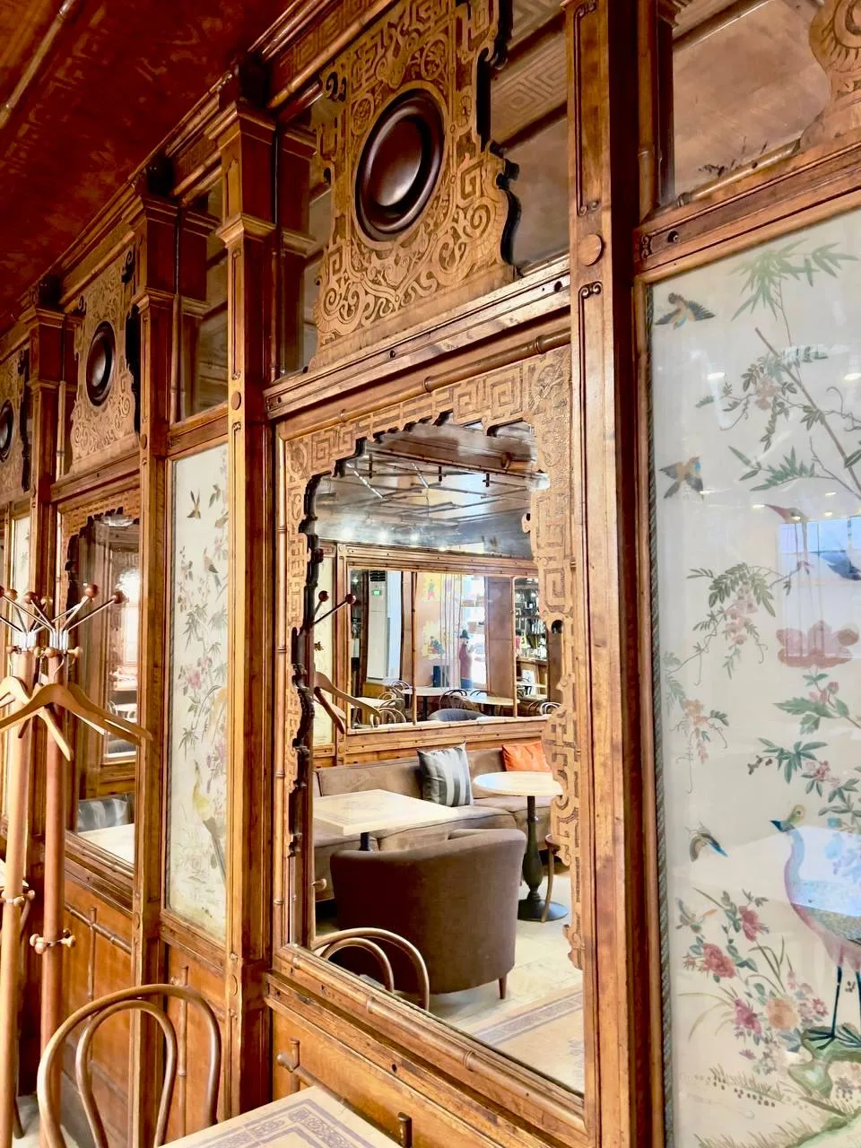 Интерьер кофейни «Абрикосовъ», выполненный в модном в то время китайском стиле, частично сохранился. Выглядит аутентично: здесь можно пообедать, выпить кофе или заказать кондитерские изделия к торжеству.