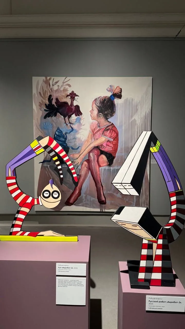 В экспозиции собрано около 300 произведений искусства XX и XXI веков. Машинки, скульптуры, обработанные ИИ фотографии и даже костюм покемона здесь соседствуют с полотнами Зинаиды Серебряковой, Кузьмы Петрова-Водкина и Алексея Пахомова.
