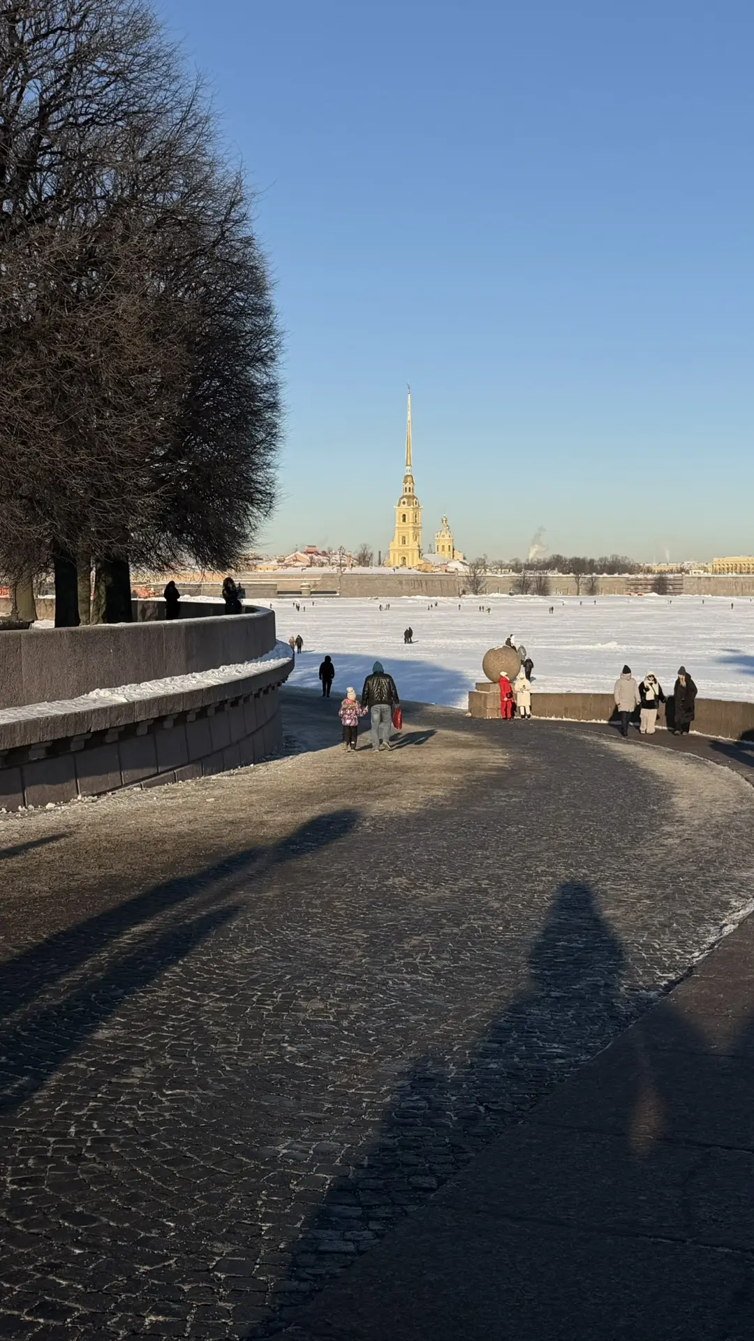По пути к театру наблюдали, как толпы людей гуляют по Неве. Дети в шоке — им ведь всегда говорили, что это опасно! 😀