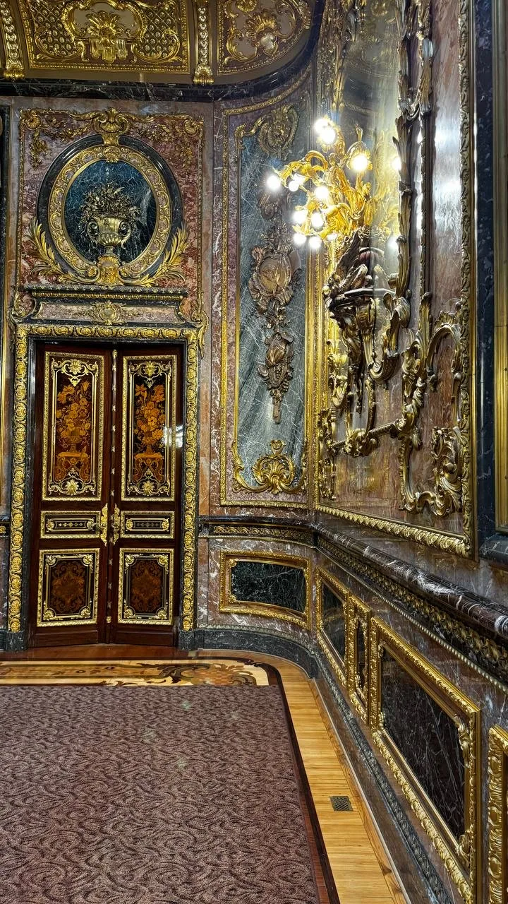 Интерьеры восхищают. Золото, мрамор и десятки видов дерева. Белый зал, нотная библиотека, эркерная гостиная и самый роскошный — Бронзовый зал.