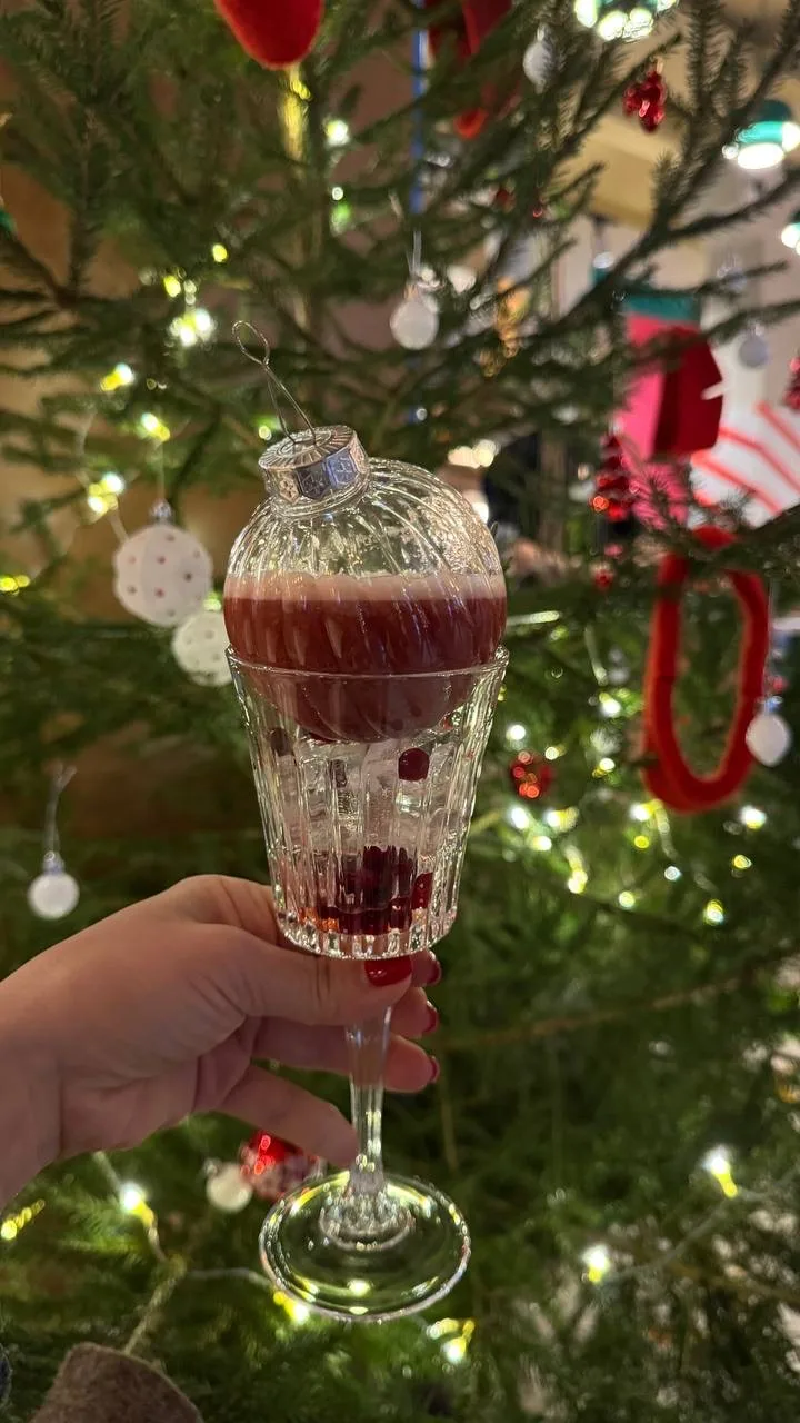 Обязательно обратите внимание на коктейли! Например, брусничный сауэр (630 руб.) подают в новогоднем шаре — смотрится роскошно и празднично.