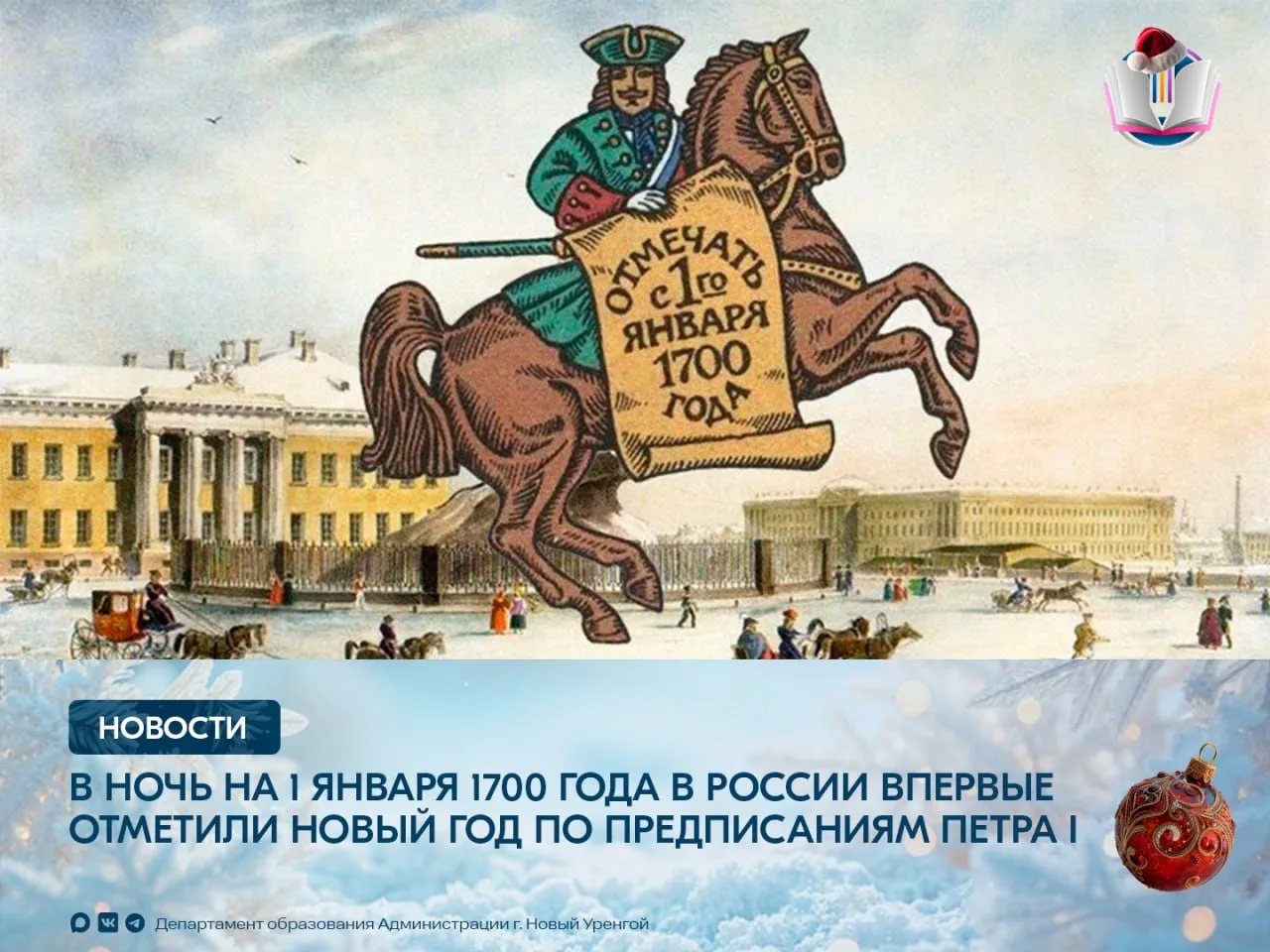🎄В 1700 году Пётр I провёл календарную реформу: ввёл летосчисление от Рождества Христова, перенёс начало года на 1 января и установил, что вслед за 31 декабря 7208 года от Сотворения мира наступит 1 января 1700 года от Рождества Христова. Из‑за этого 1699 год длился всего 4 месяца — с сентября по декабрь.