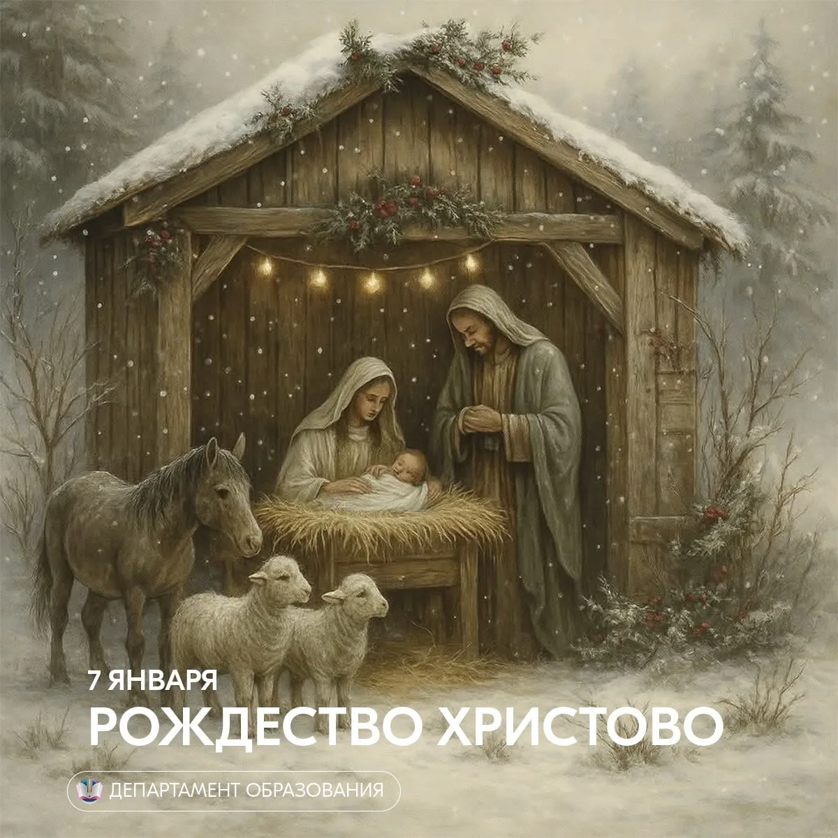 Дорогие учителя, ученики, родители и все работники сферы образования! От имени Департамента образования сердечно поздравляем вас с светлым праздником Рождества Христова!