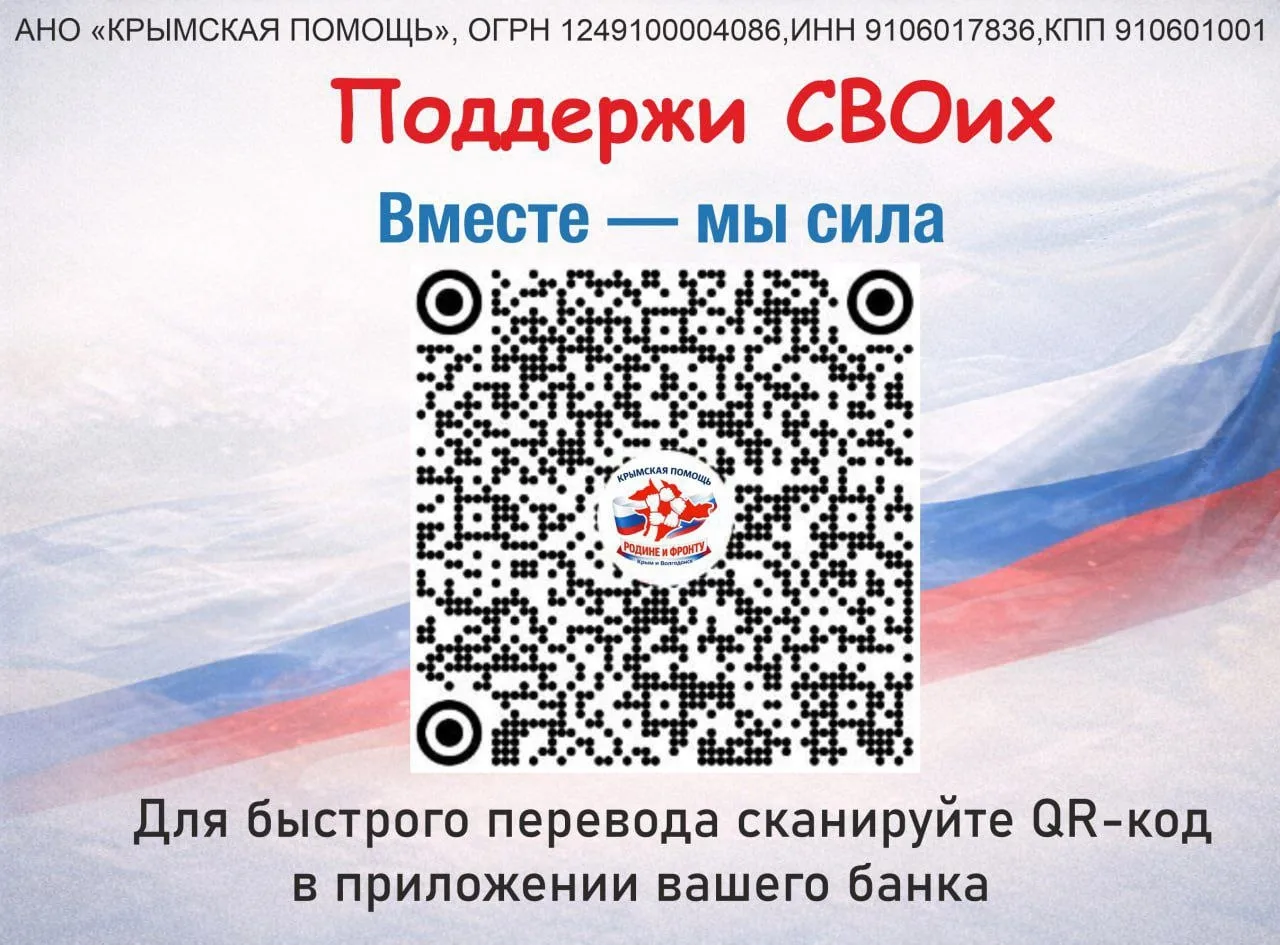 Мы — АНО «Крымская Помощь Родине и Фронту». Отправляем на передовую снаряжение, медикаменты, тёплые вещи. Поддерживаем семьи бойцов.