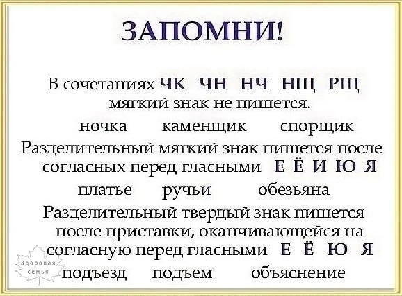 Пpaвилa пo руccкому языку в начaльныx клаccaх