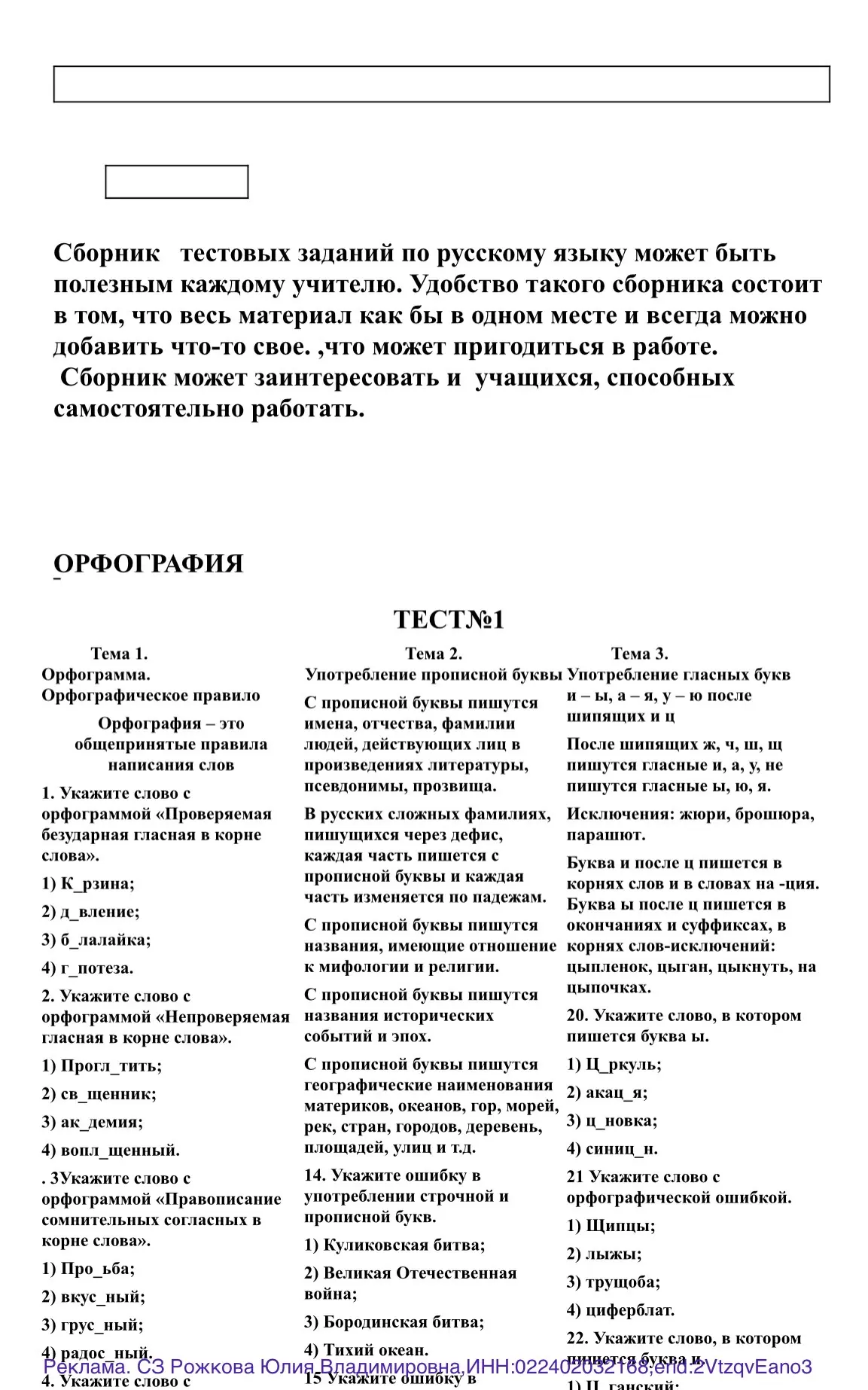 Сборник тестовых заданий по русскому языку 1-11 класс